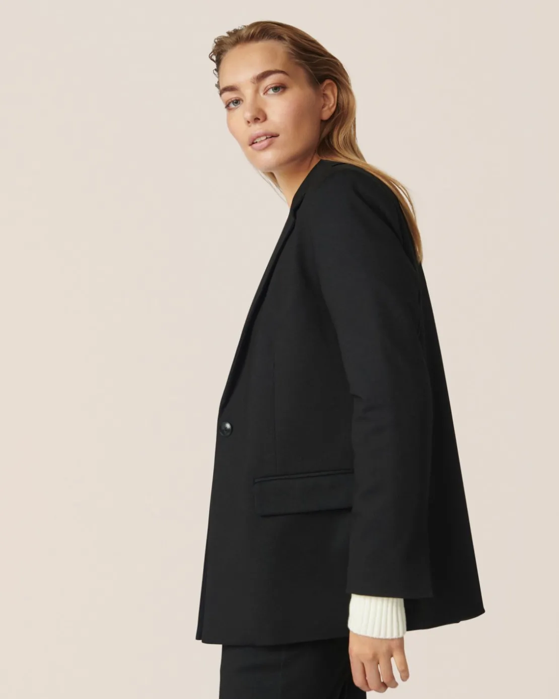 Classic black blazer, in an oversized fit and two pockets at the front.