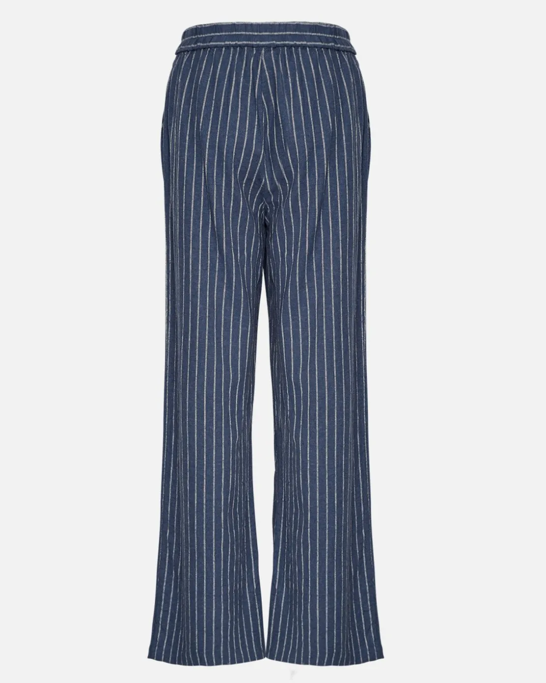 Casual yet chic wide-fit pants with stripes in a nice linen blend. They feature elastic waistband for maximum comfort and side pockets for a casual effect. Select a matching linen style to complete your look, or tone it down with a simple top for some simplicity.