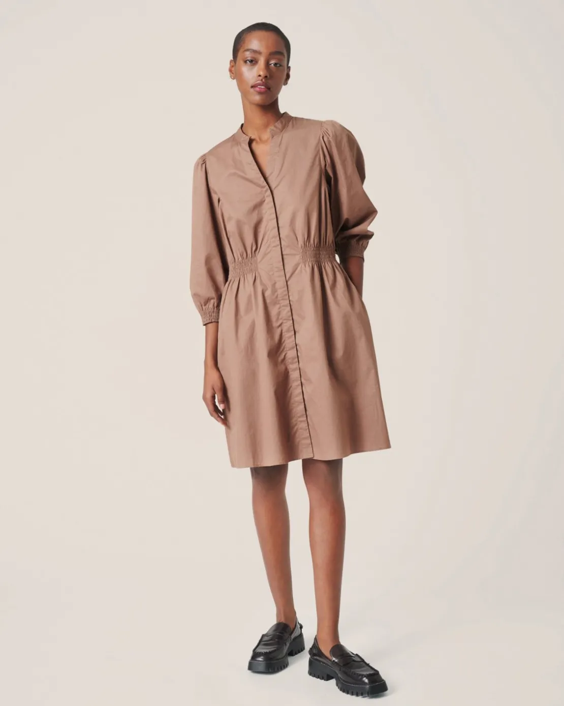 This dress has a relaxed fit. The model is 176 cm tall and is wearing a size S.