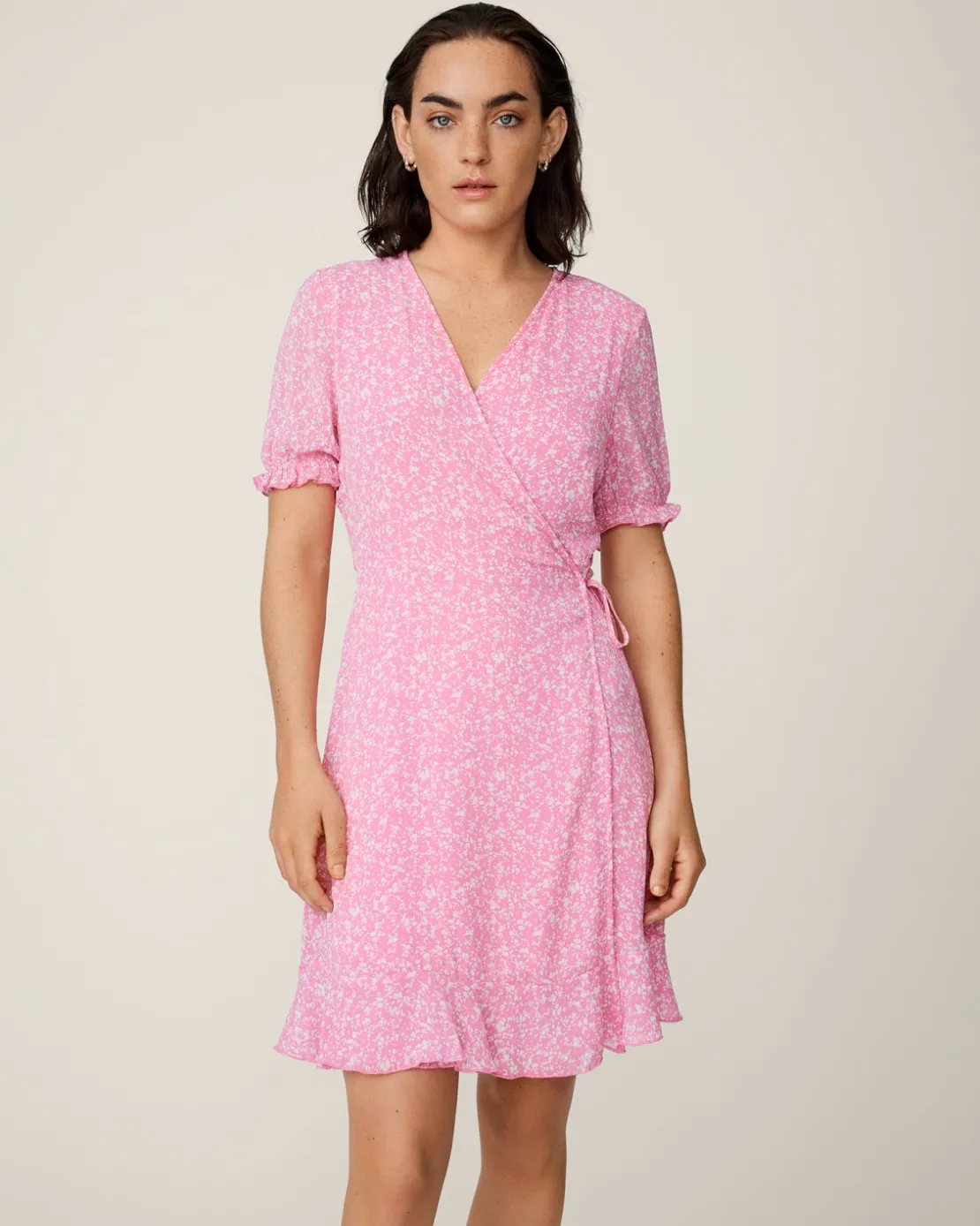 This dress has a regular fit. The model is 174 cm tall and is wearing a size S.