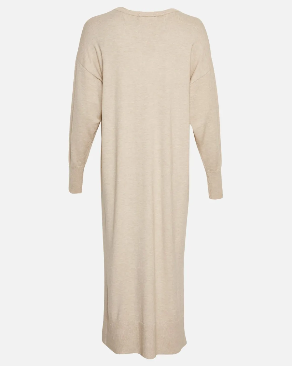 This long knitted dress has a V-neck, dropped shoulders and slit detailing.