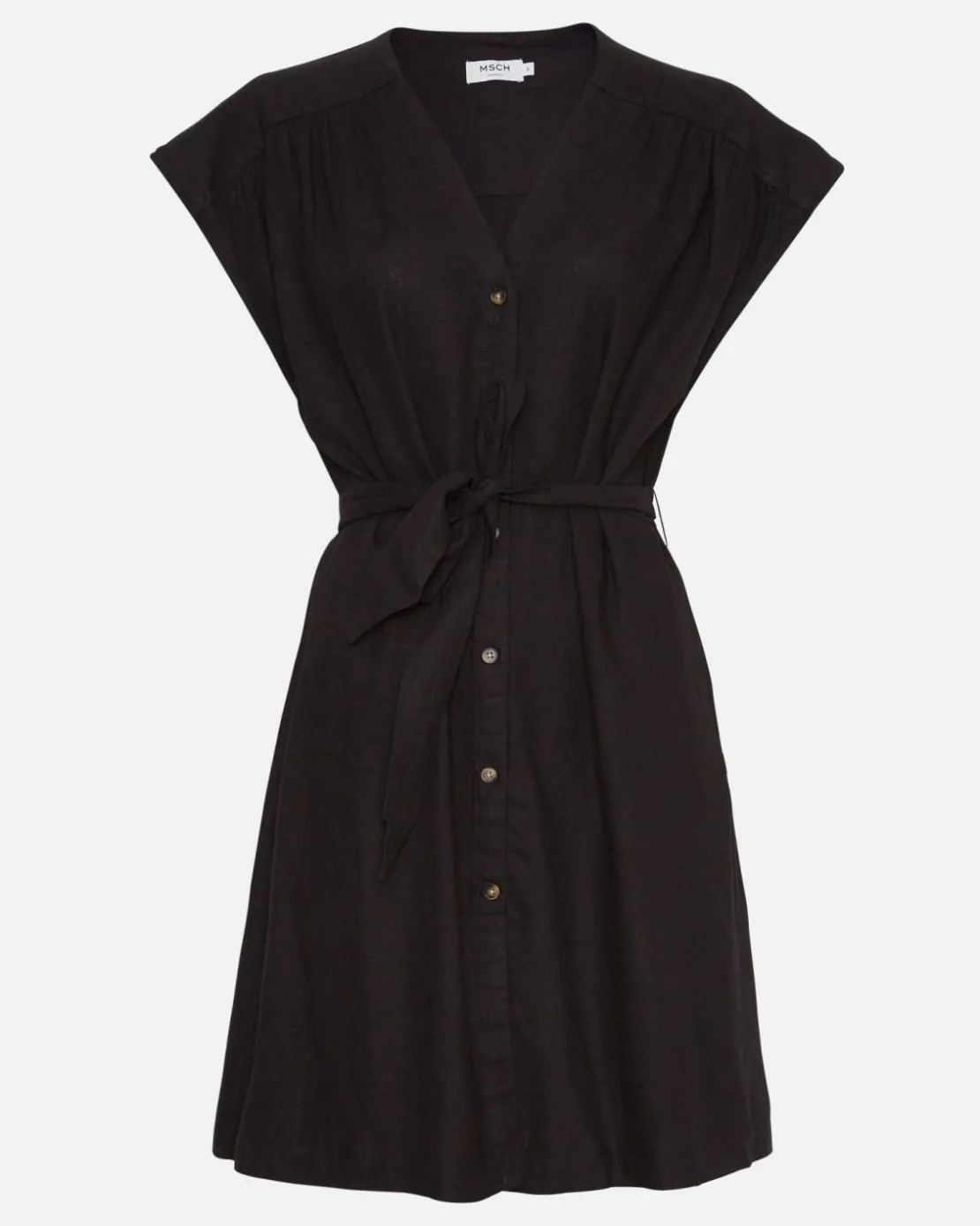 The Jovene collection is a range of products made from linen and cotton, designed to be your favorite pieces for the summer. Easy and breasy, wearable styles, to mix and match however you like. This dress features a v-neck with buttons and a belt to tie around the waist. The sleeves are short and with small pleats.