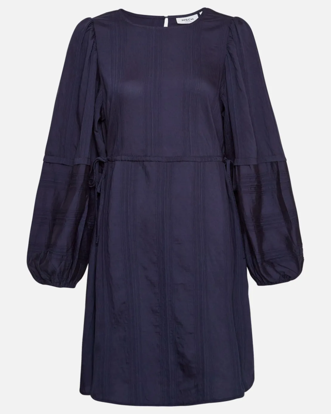 Luana dress is a versitile dress as you can tie it for a tight fit at the waist or leave it loose for a casual outfit. The entire dress is covered with small lining details, giving this simple dress a rich, structured look. There is a small button detail on the back and elastics at the cuff.