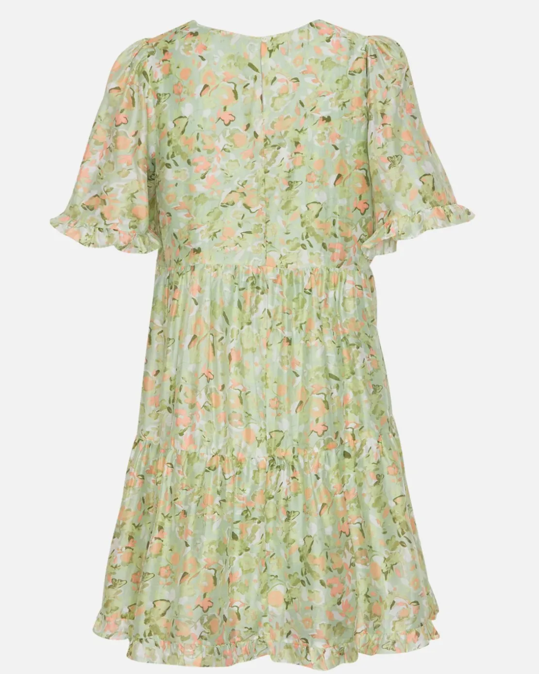 Slip into this floral short dress for an effortless look. This easy breezy dress comes with frills at the sleeves and gatherings, making a flouncy summer silhouette.