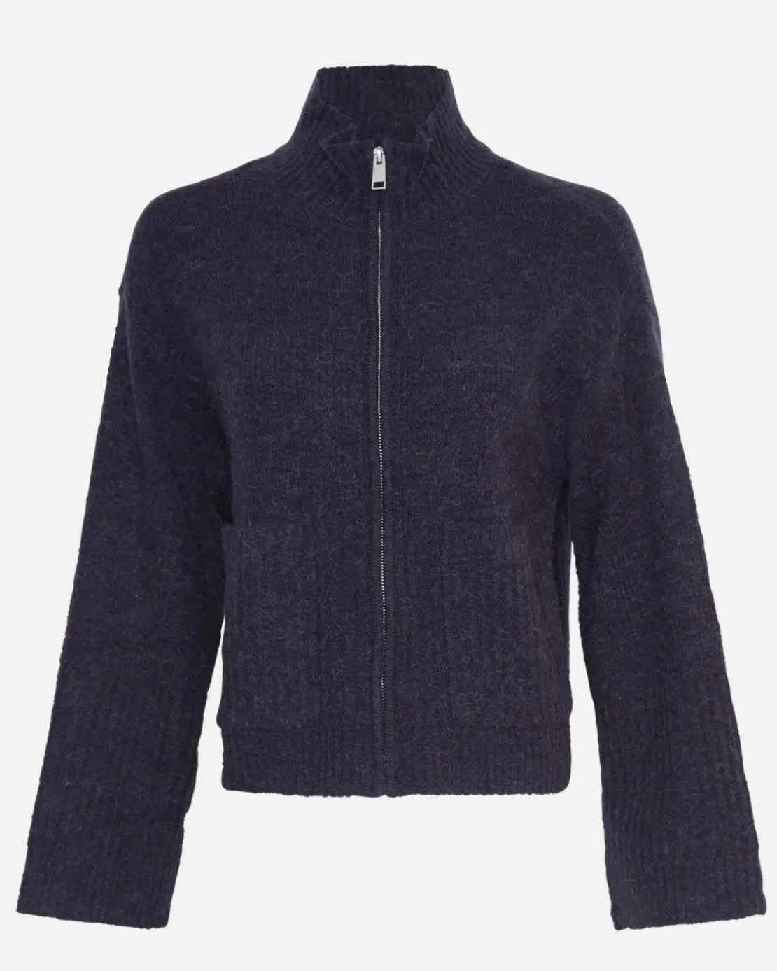 Lediona seamlessly combines fashion and functionality in a chic yet laid-back way. The convenient zip closure allows you to adjust your look and provide extra layering if needed. This soft knit cardigan features two front pockets, high neck and a nice structured pattern in the design.Whether layering it over a basic tee or pair it with a feminine blouse, this cardigan will provide a versatile choice for any occasion.