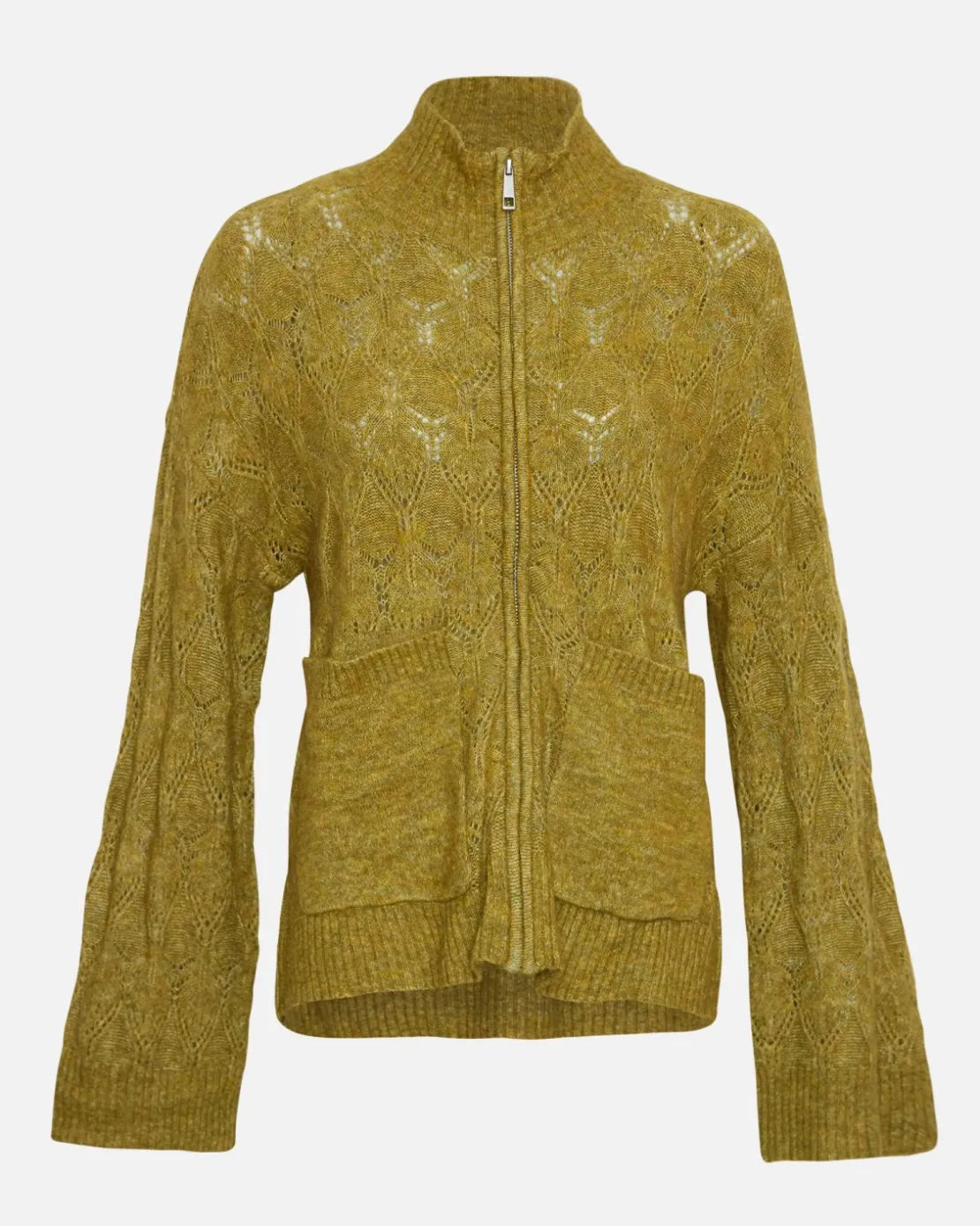 Lessine seamlessly combines fashion and functionality in a chic yet laid-back way in a high-quality wool and alpaca blend. The convenient zip closure allows you to adjust your look and provide extra layering if needed. This soft knit cardigan features two front pockets, adding a touch of functionality to the outfit while the beautiful knit pattern enhances timeless elegance. The high neck not only provides warmth, but also adds a soft feel against your skin. Whether layering it over a basic tee or pair it with a feminine blouse, this cardigan will provide a versatile choice for any occasion.
