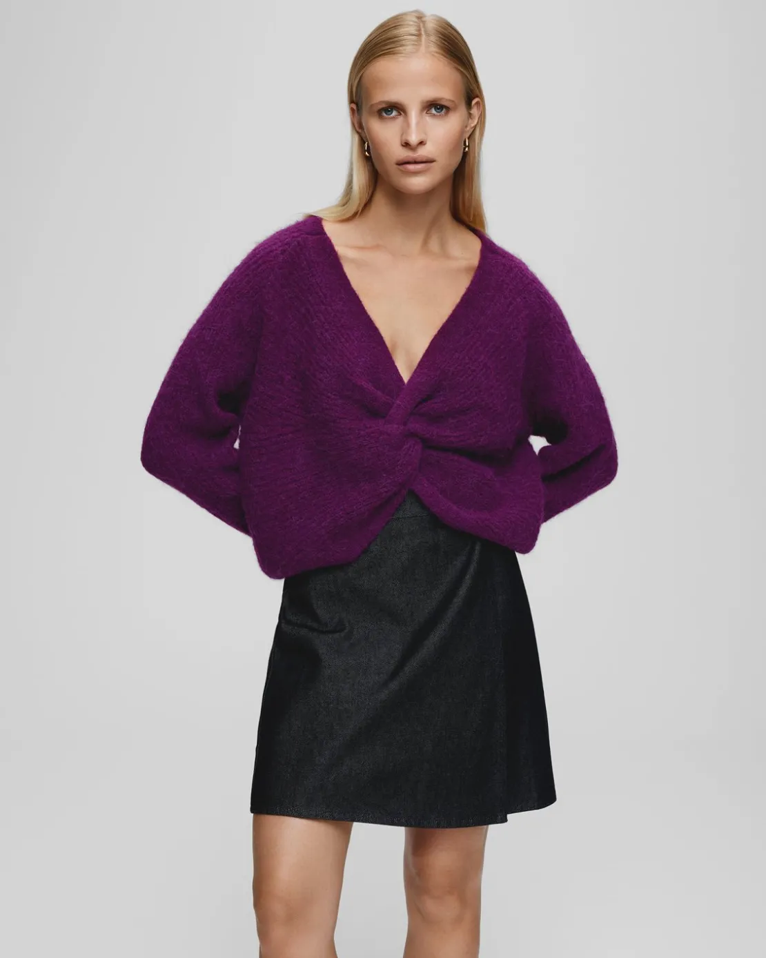 Wrap yourself in style with this chic pullover that offers a blend of timeless sophistication and modern flair. The half cardigan pattern, the longhaired fibers and the raglan sleeves all adds a touch of intrigue to the classic knit design, creating an exquisite visual that sets you apart from the crowd. The twist effect drapes gracefully, highlighting your figure and offering a flattering fit for all body types.