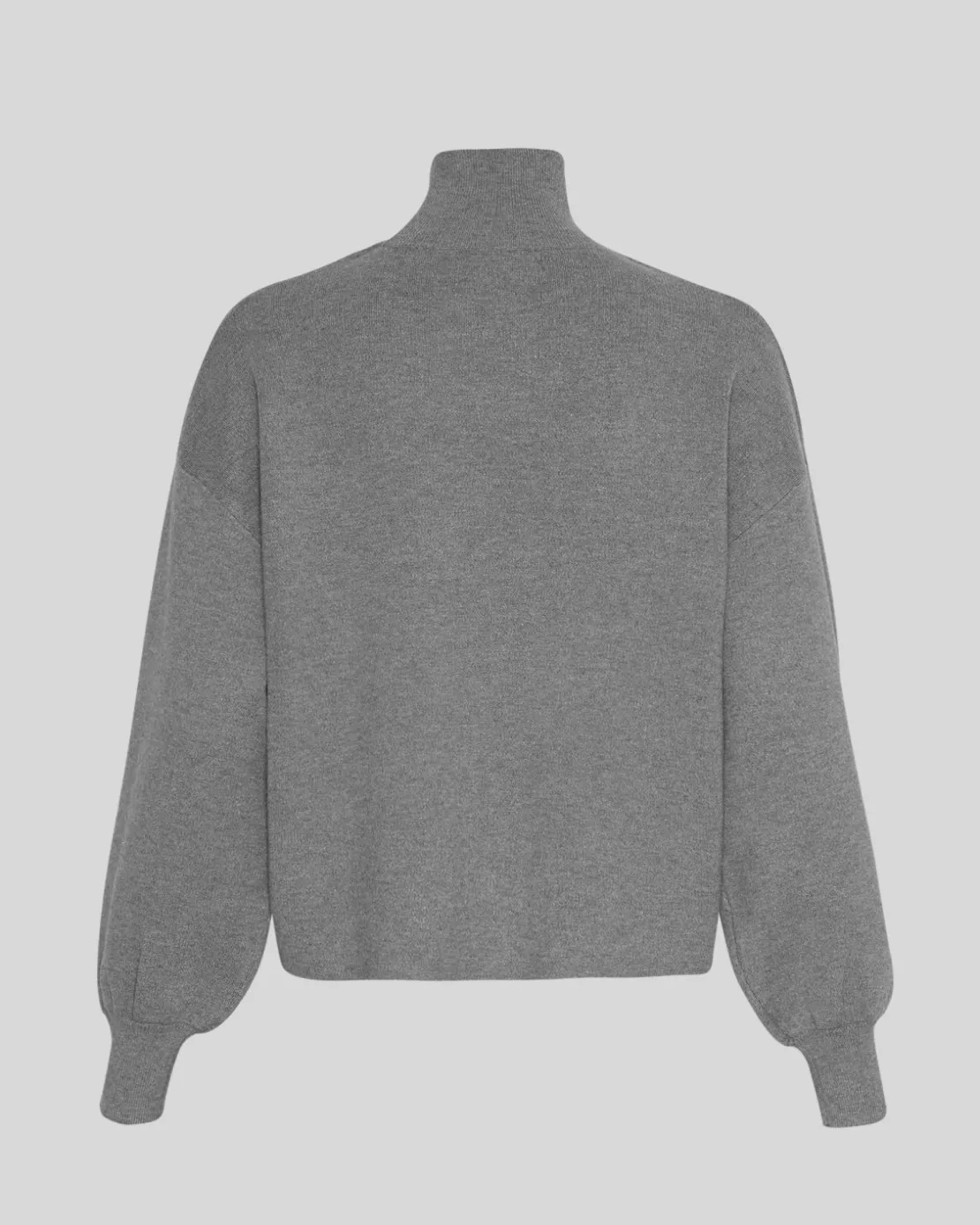 Our Mercy styles is a thick knitted quality, very soft against the skin and has a very clean look. This pullover is classic and timeless with its high neck and slightly loos sleeves. A style that you’ll wear again and again, as it can be styles with both pants, skirts and dresses.