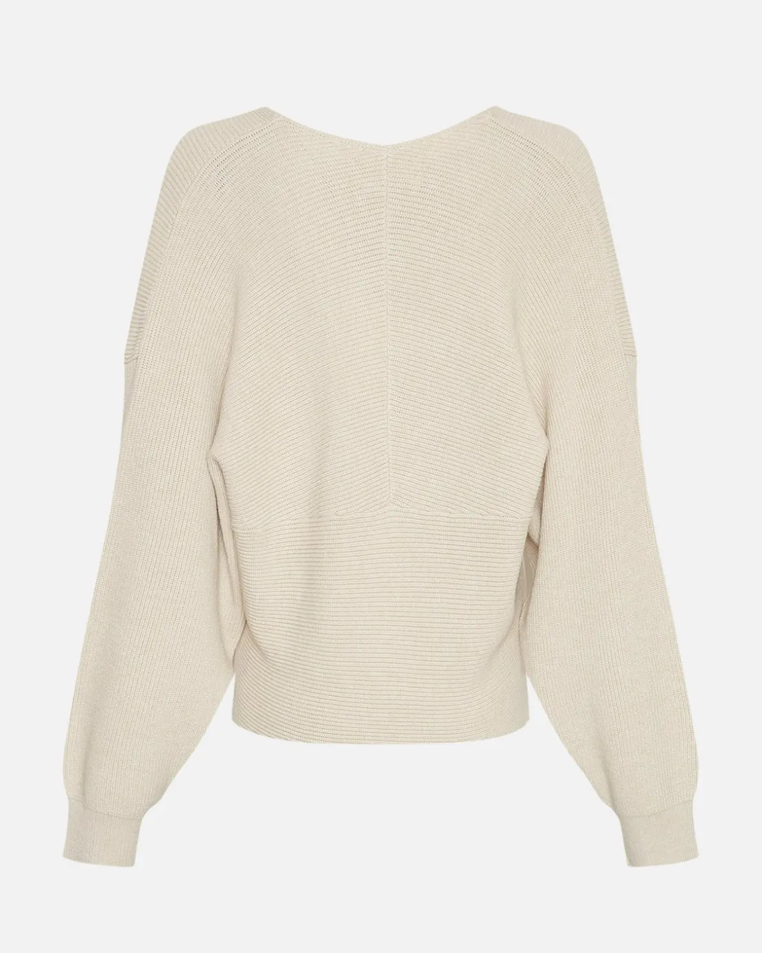 Wrap yourself in style with this chic pullover that offers a blend of timeless sophistication and modern flair. The half cardigan pattern adds a touch of intrigue to the classic knit design, creating an exquisite visual that sets you apart from the crowd. The wrap silhouette drapes gracefully, highlighting your figure and offering a flattering fit for all body types. It features dropped shoulders with a soft, cozy feel. This pullover is a highly versatile stye, seamlessly transitioning from day to night. Whether attending a cozy daytime gathering or a chic evening outing, this pullover exudes confidence and charm. Pair it with black washed jeans for a minimalistic look.