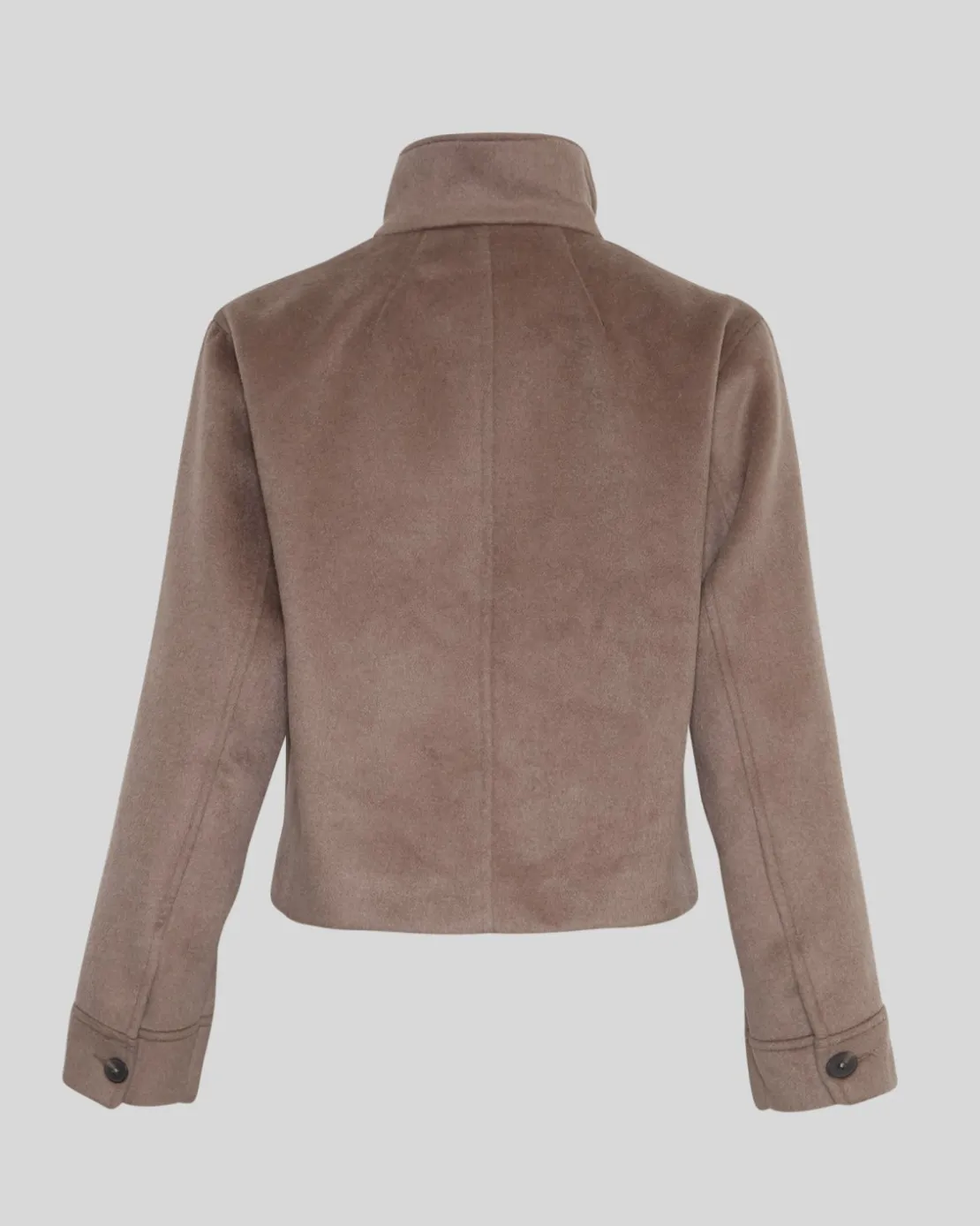 The Lilianna jacket is a wool-blend coat in a boxy fit with it’s wide and short cut. The jacket features a high neck, hidden zipper and two big front pockets. The material is brushed and will therefore have a soft feel. A perfect autumn jacket, in a soft brown nuance.