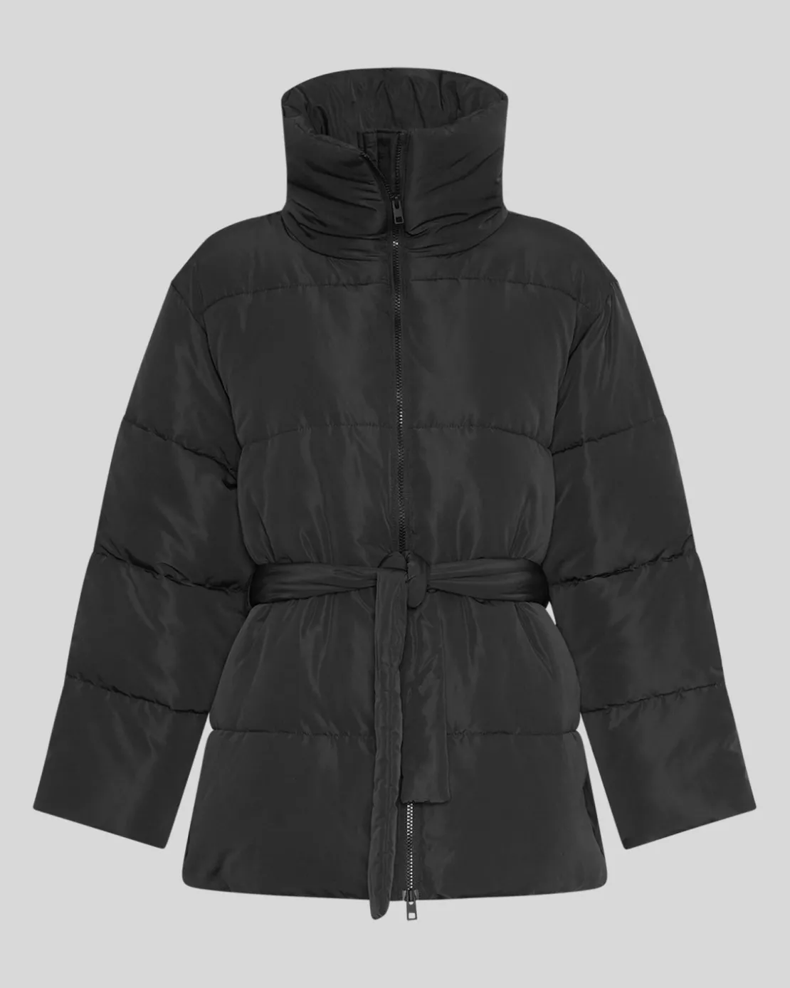 This statement piece is designed to give you a cool and chic style with its oversized look. This puffer features a zipper closure and a belt to enbrace your waist. The oversized fit offers a modern touch, making it the perfect choice for those seeking a bold fashion statement. The high neck detail offers extra insulation against the cold, and the side pockets provide a functional feature to this jacket.