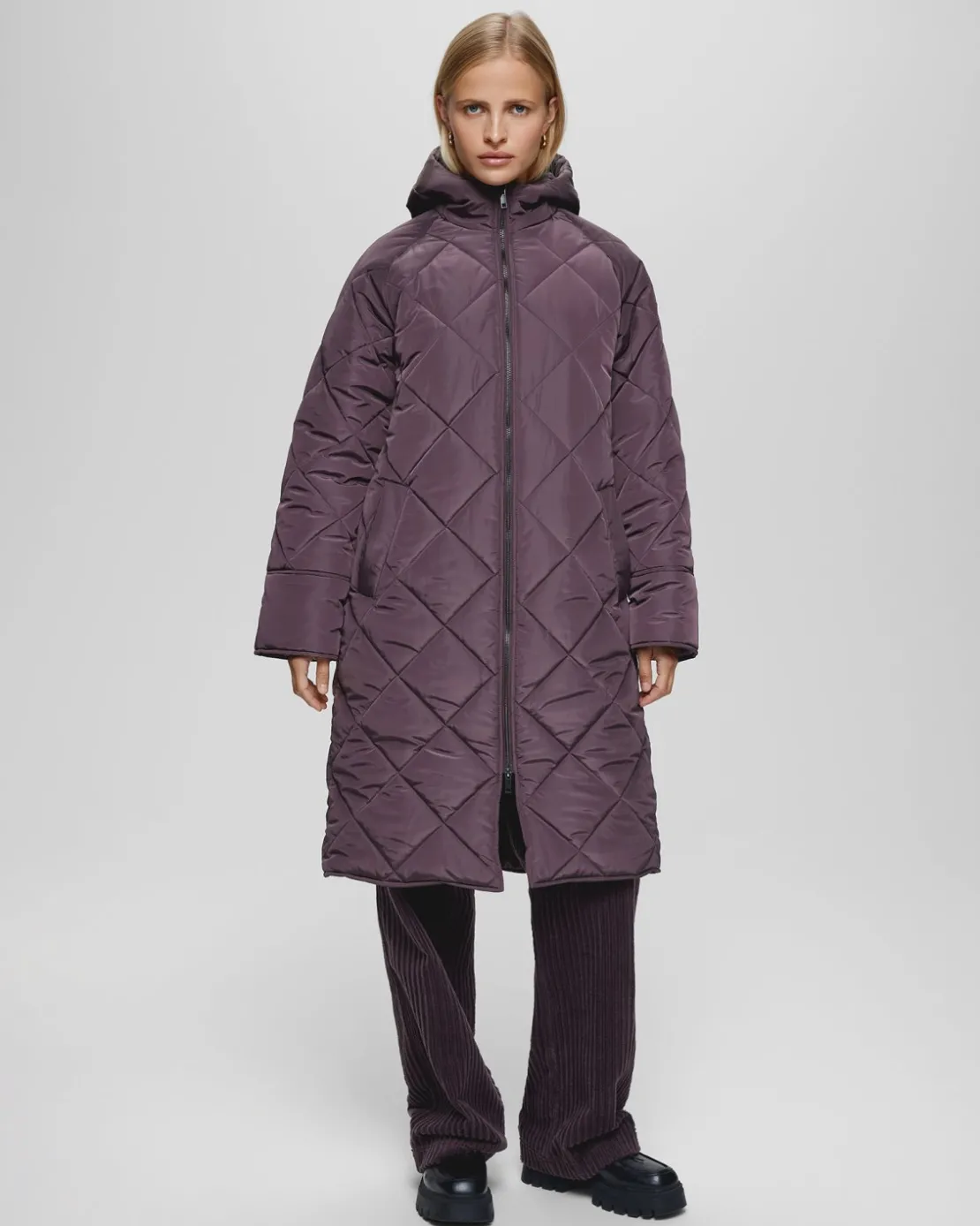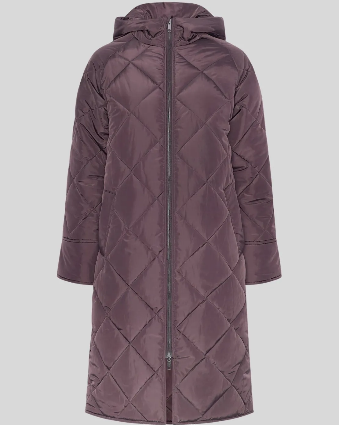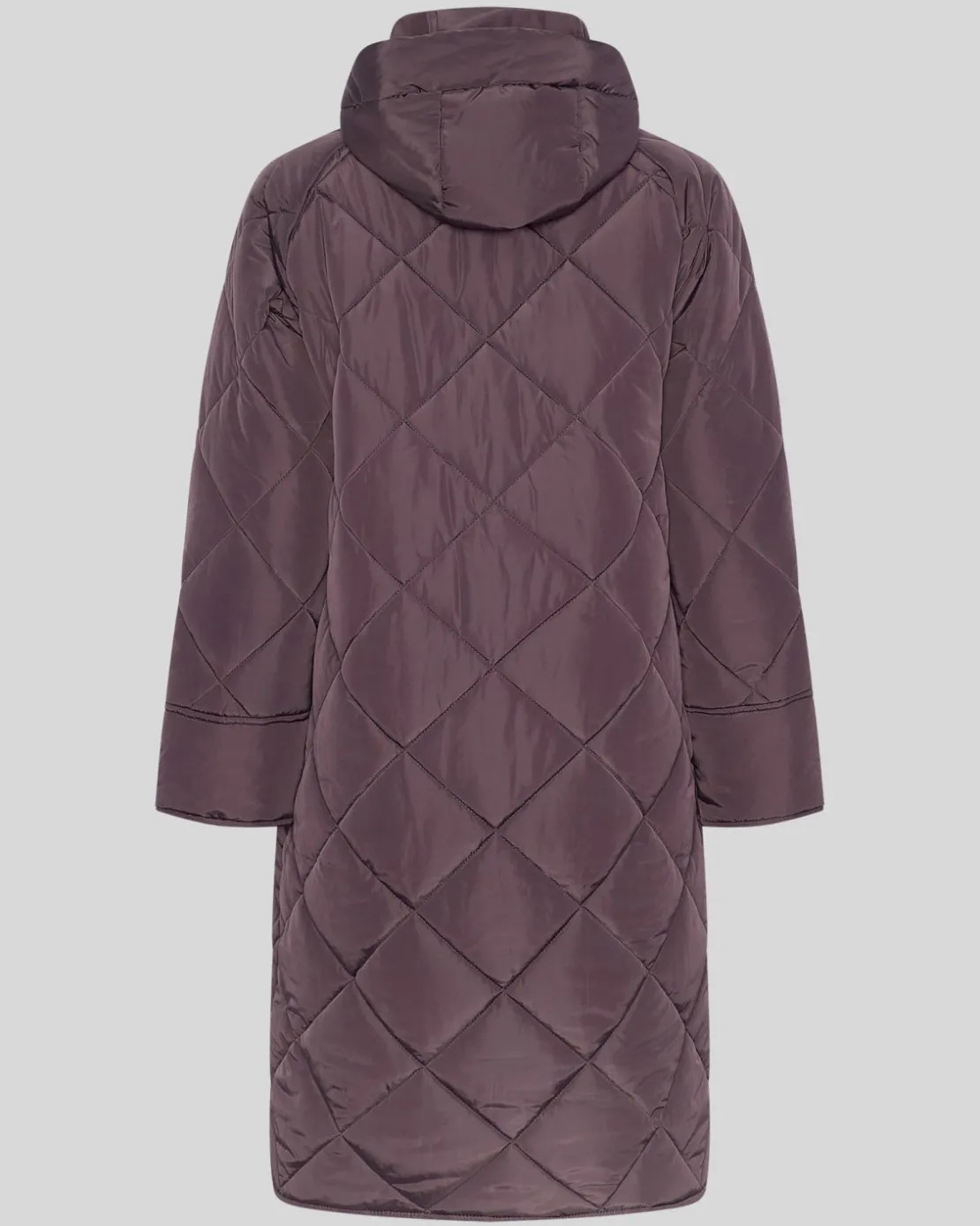 This lightly quilted jacket is the perfect season transitional jacket. It’s light yet keeps you warm and is in a longline design. The jacket features a high neck and a hood, with long semi wide sleeves and a two-way zipper for closure. There is two front pockets as well.