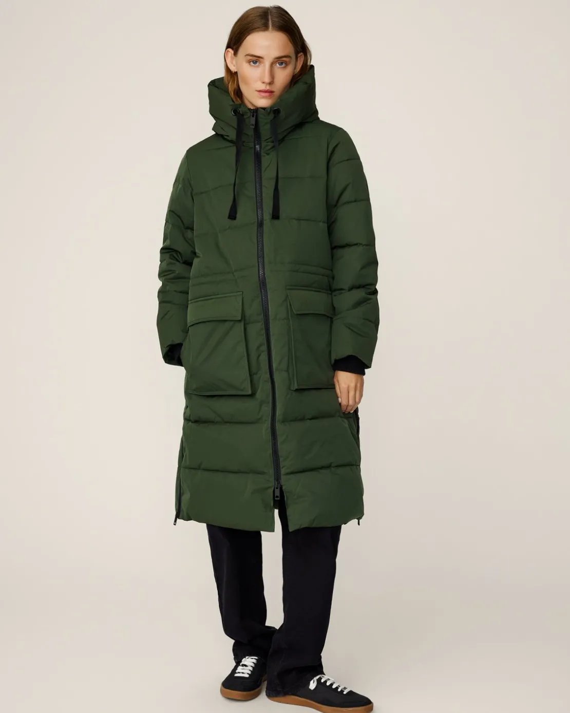 Our Pavine Down jacket is a MSCH Favorite, the ultimate winter jacket making sure you’re kept warm in the cold winter months. Pavine is filled with RDS down and the shell of the jacket is water repellent. The details are emaculate, featuring 2 front and 2 side pockets, both a zip and button closing. The shape of the jacket is slightly oversize with a pinch of an A shape. The jacket has a high neck so you don’t neccesarily need a scarf to cover your neck and there’s elastic cuffs closing off for cold air coming up through the sleeve. Pavine is thought through and created for practically but yet in a beautiful design, so you can still feel dressed nicely in a big winter jacket.
