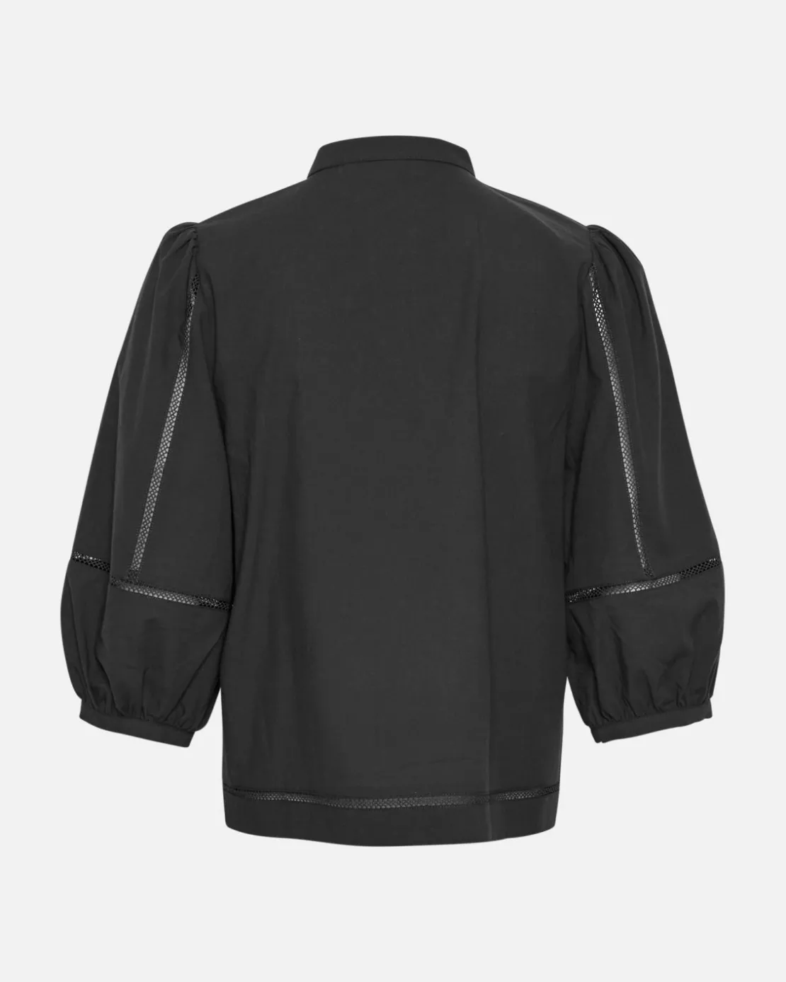 Our new Erendia top is a feminine top that features a round neckline with mandarin collar, button-up closure and short sleeves in 2/4 length. It comes with romantic tape details across the sleeves, the hem and on the front. It’s ideal for both a casual outing, an office outfit or styles with jeans.