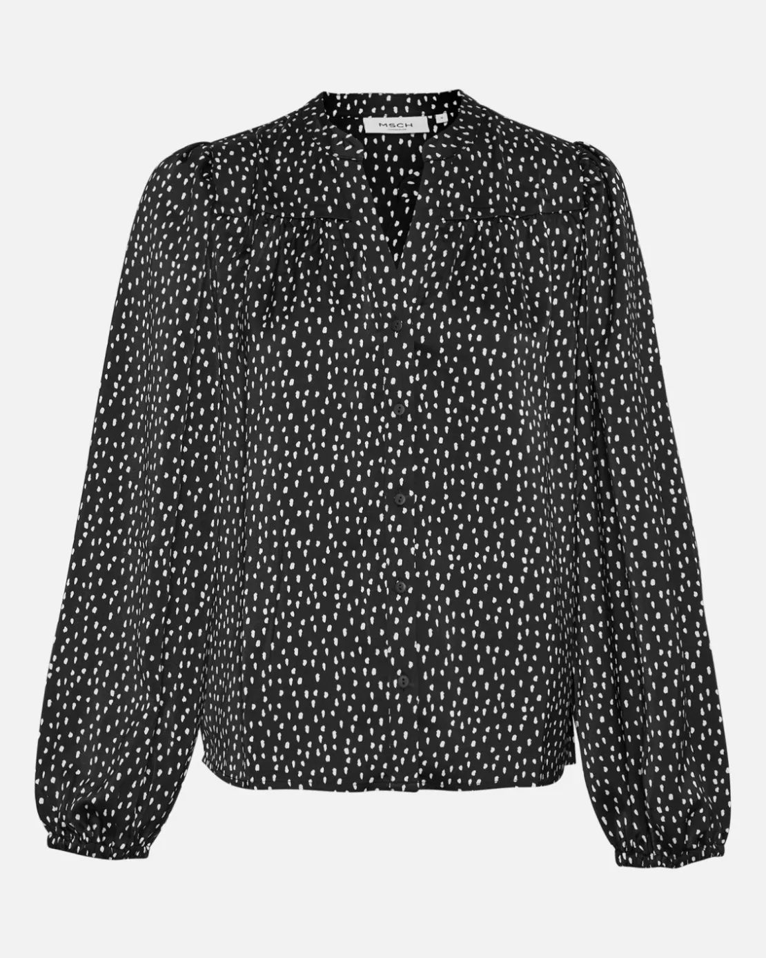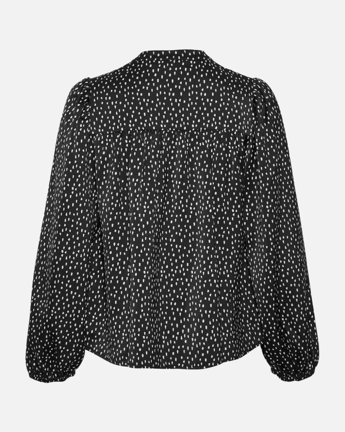 The Hannalise shirt is made a lightweight and flowy fabric, and with the simple print offering a versatile piece that seamlessly transitions from casual to more polished occasions. The Hannalise Shirt features a versatile silhouette, perfect for various styling options. Whether worn loosely over jeans for a relaxed look or tucked into a high-waisted skirt for a more fancy outfit, this shirt complements a range of outfit choices.