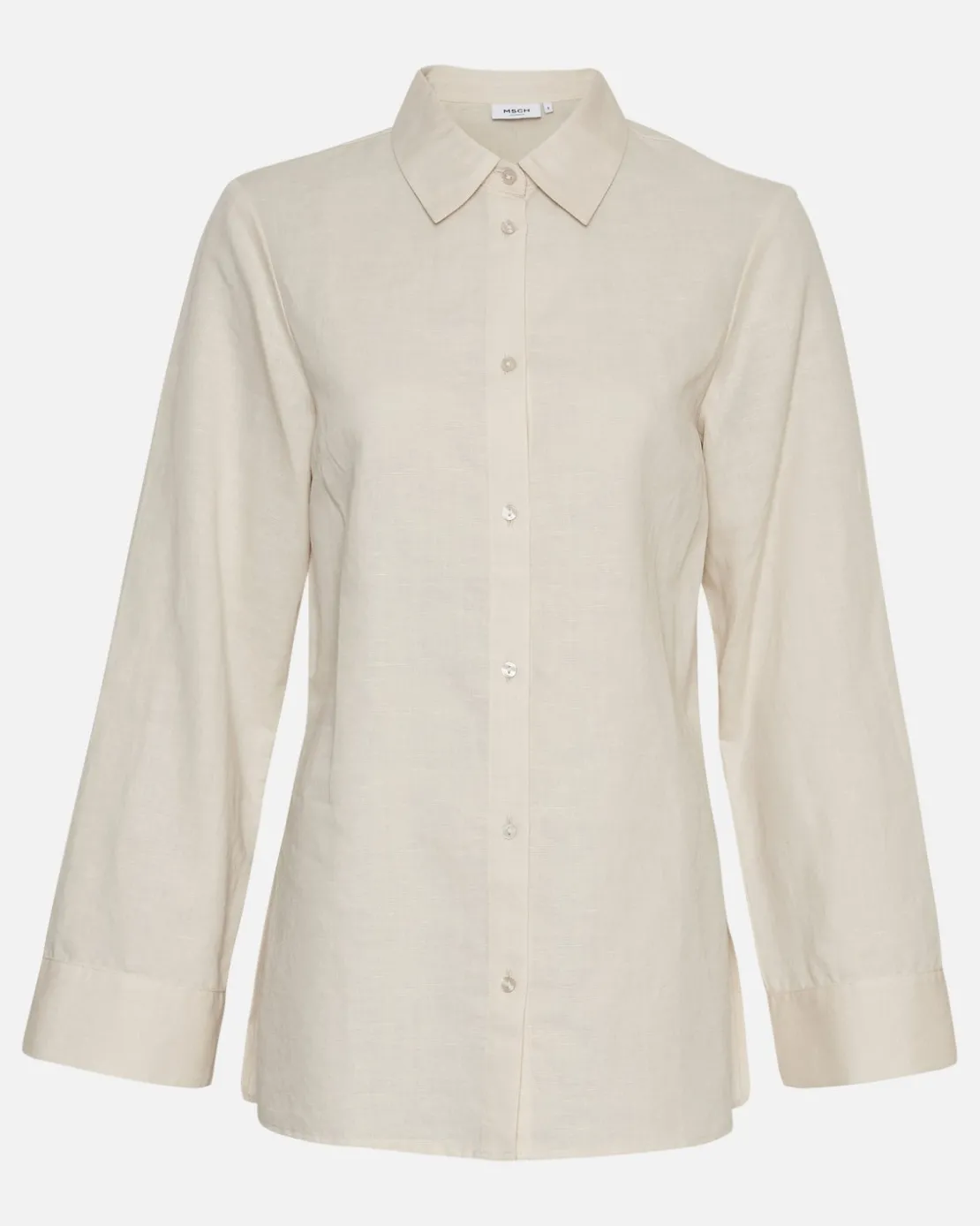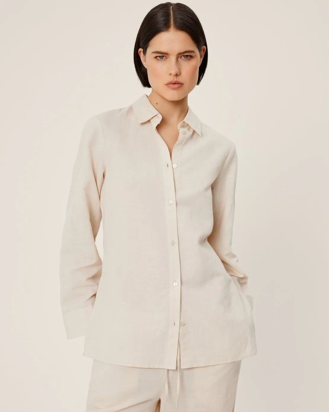 This linen shirt is the perfect mix of chic and comfort for the upcoming summer days. It features side slits, back pleats, have full button closure and comes with long sleeves. Style it with our other linen styles, such as our blazers, shorts, skirts, and pants.