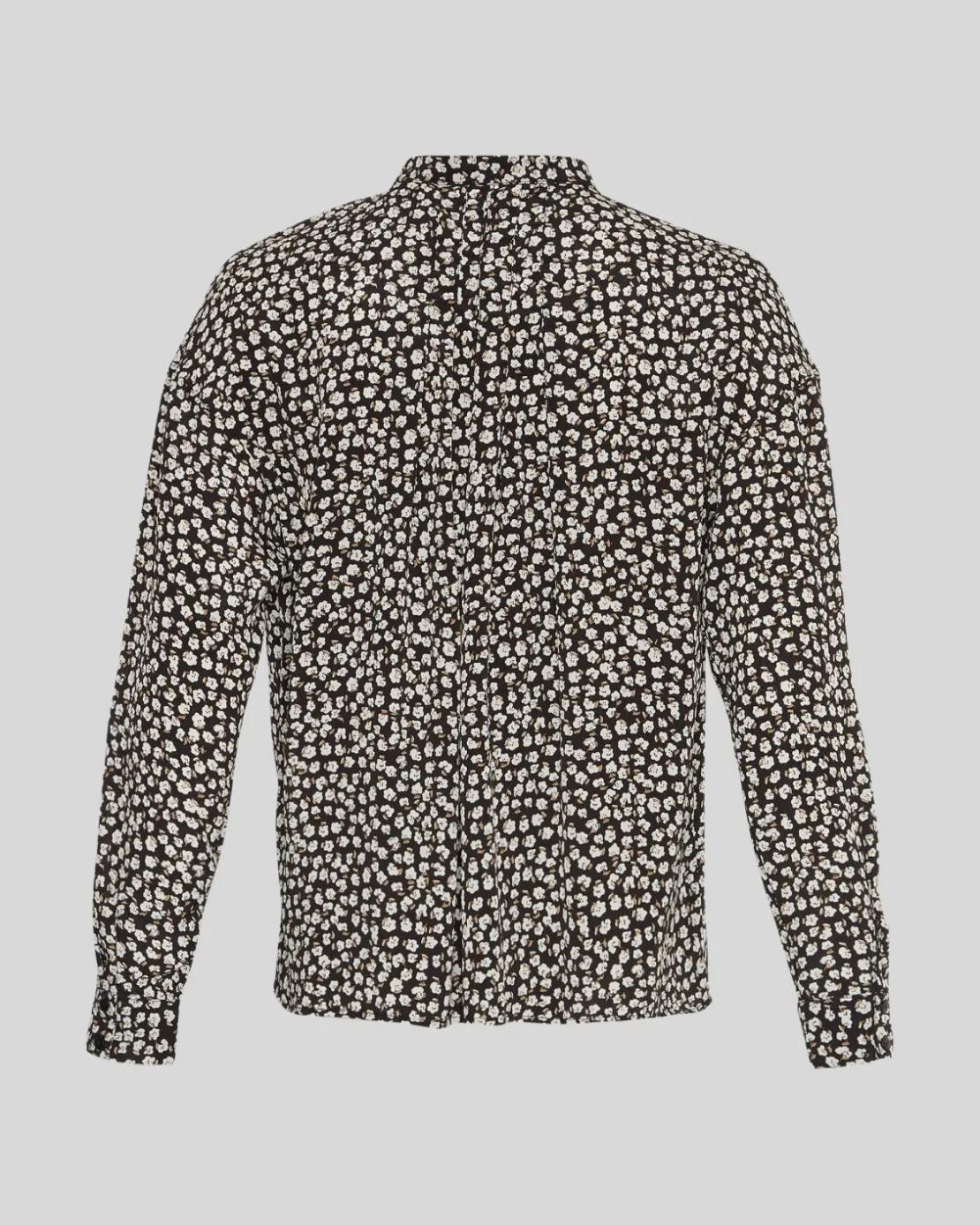 The Zeida shirt is crafted from a beautiful black fabric with a delicate white floral print. Featuring long sleeves, a small collar, and cuffs, it’s the perfect everyday shirt thanks to its lightweight and comfortable design. Style it with black for a complete autumn look, or pair it with your favorite skirt to brighten up your outfit.