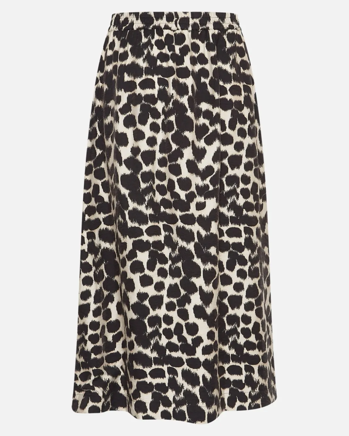 Ottelie is a beige and black leo printed skirt. The skirts design itself is simple, a long and loose skirt with an elastic band and side pockets, it’s the pattern that gives this skirt the trendy look. There’s both a matching top and shirt, or simply style it with a t-shirt that’ll compliment the nuances of the pattern.
