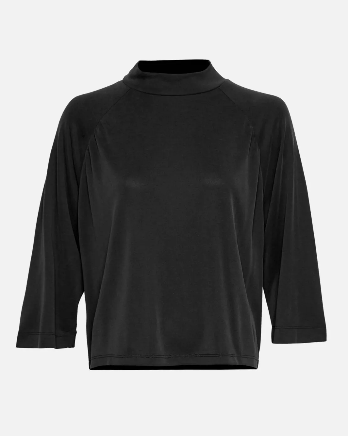 A super soft tee with a high neck, 3/4 raglan sleeves.