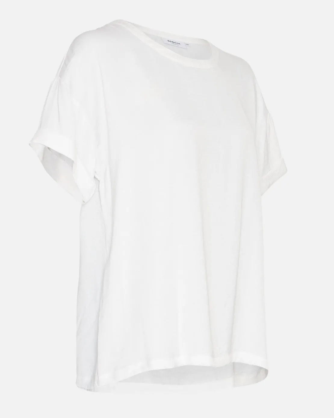 Our favorite MSCH Maluca shirt, now made into a t-shirt. It’s the same quality, so very lightweight, flowy and easy to wear The t-shirt has a round neck and rolled up sleeves.