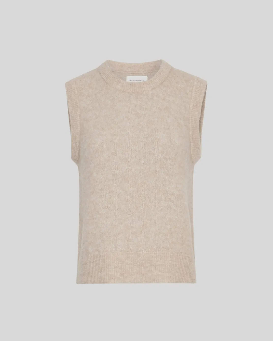 A classic knitted vest is coming back in trend. It’s the stunning combination of simplicity, genderless, knitwear. This vest features an elegant regular fit, with a round neck, and ribbed egde both at neck, sleeve openinge and the bottom. Style it with both skirts and pants.