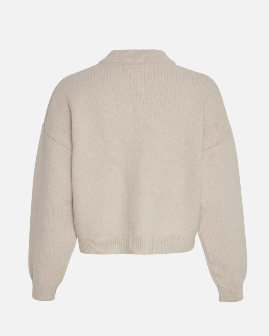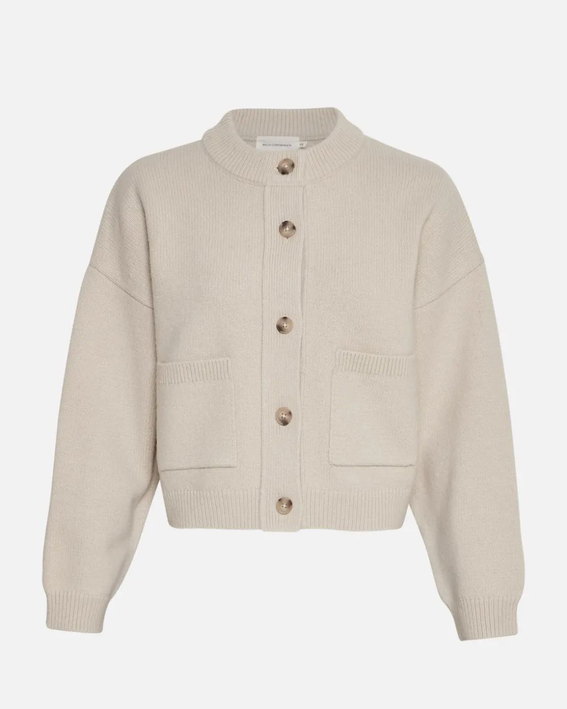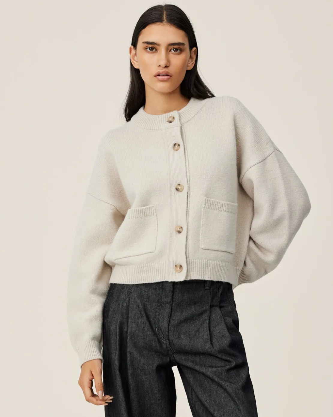 The Carina knit quality is a heavy knit, giving the cardigan a luxurious feeling. This cardigan features drop shoulders and 2 square front pockets. It has the perfect length to be used with both pants and skirts.