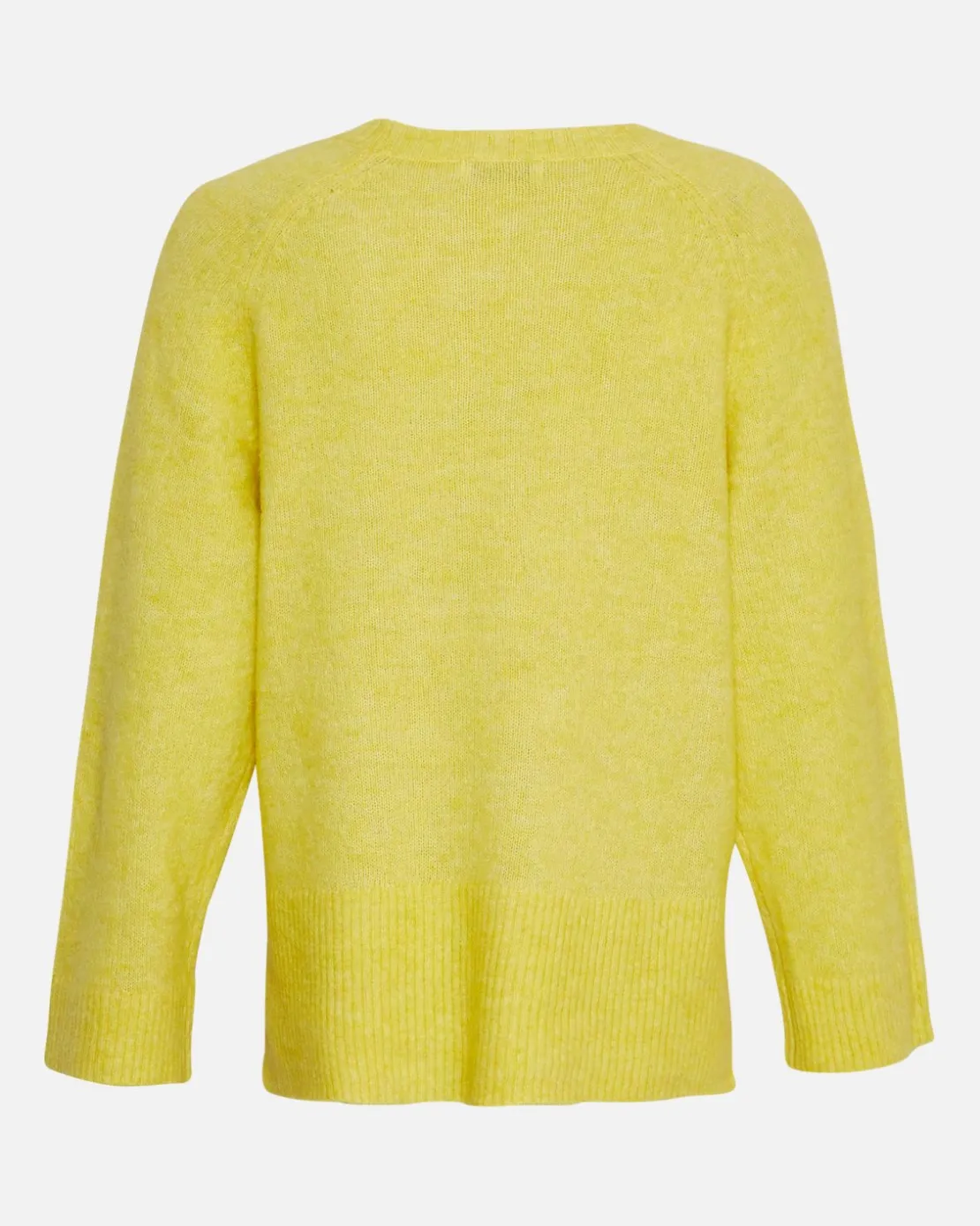 This pullover has raglan sleeves and side slits.