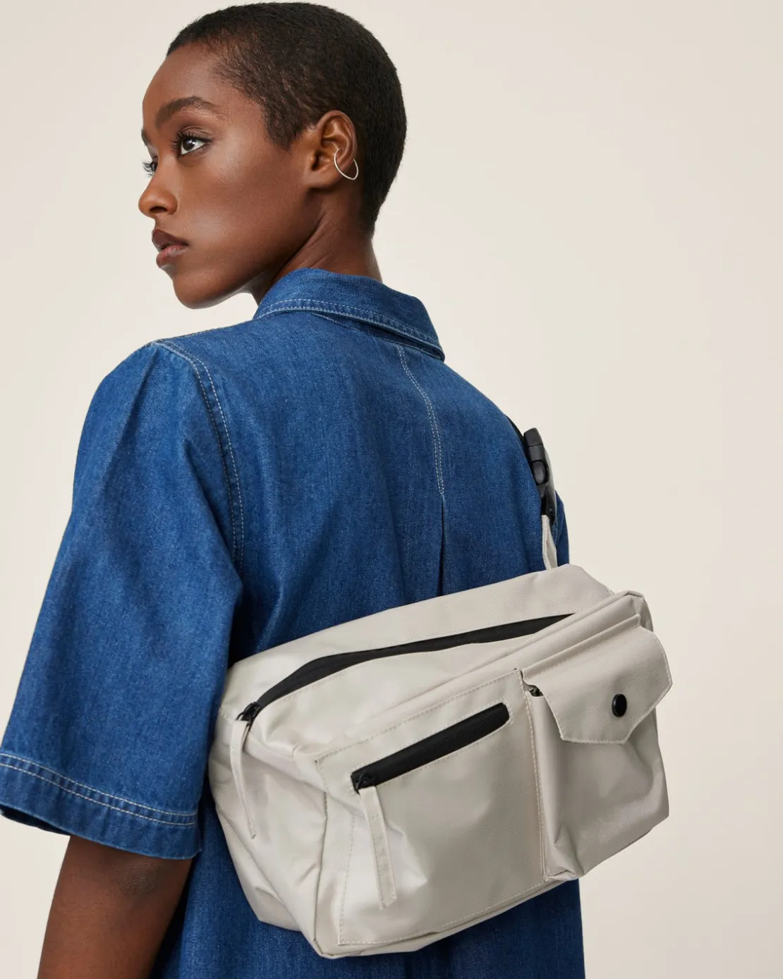 The perfect modern accessory for the on-the-go individual. The modern design combines functionality and style, offering a practical and fashionable solution to keep your essentials close at hand. The adjustable strap allows you to accessories your waist or wear it across your body, adopting to your preferred style while securing a comfortable fit. With plenty of compartments and pockets, this bumbag offers ample storage place for your belongings, including bigger items such as smartphones, keys and a wallet. The zipper pockets provide perfect space for smaller items such as lip balms. Whether you opt for the classic black color or the sand tone, this bumbag will be your best companion while running errands, exploring a city on vacation or attending a music festival. Enjoy the hands-free utility of this bumbag while staying in style.