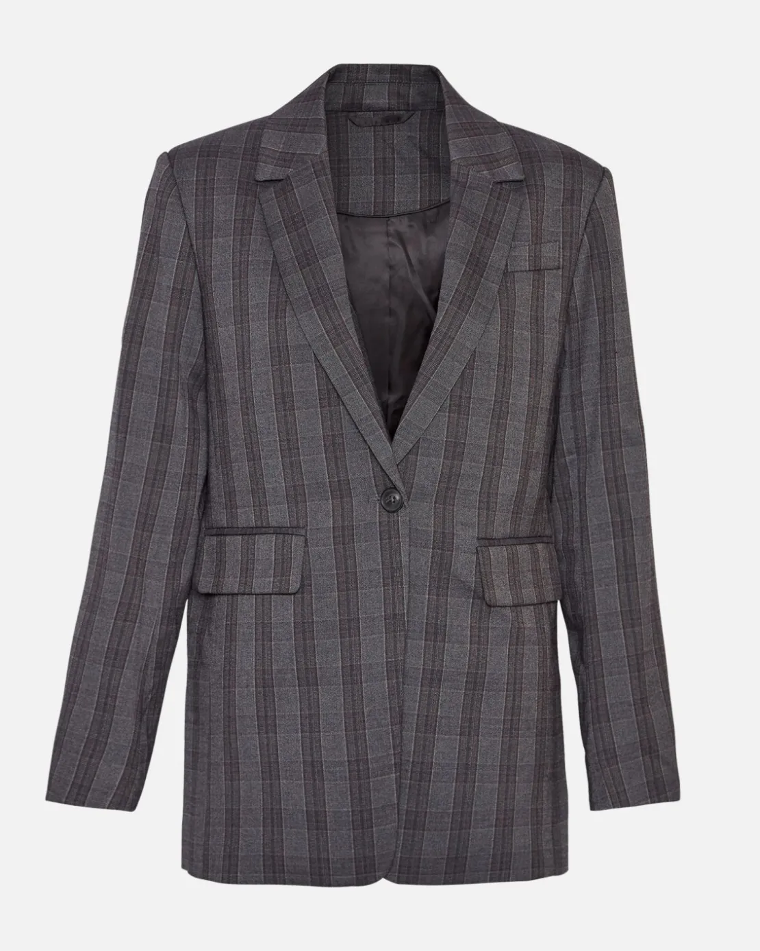 Blazers are still the go-to cove rup and this checkered one will give your outfit a bit more flair. With the pattern and it’s dark colours it provides a more masculine vibe, which is also trending. The fit is classic regular fitted blazer, with front pockets and a single button. Style it with either the matching skirt, the matching pants or a pair of classic black pants.