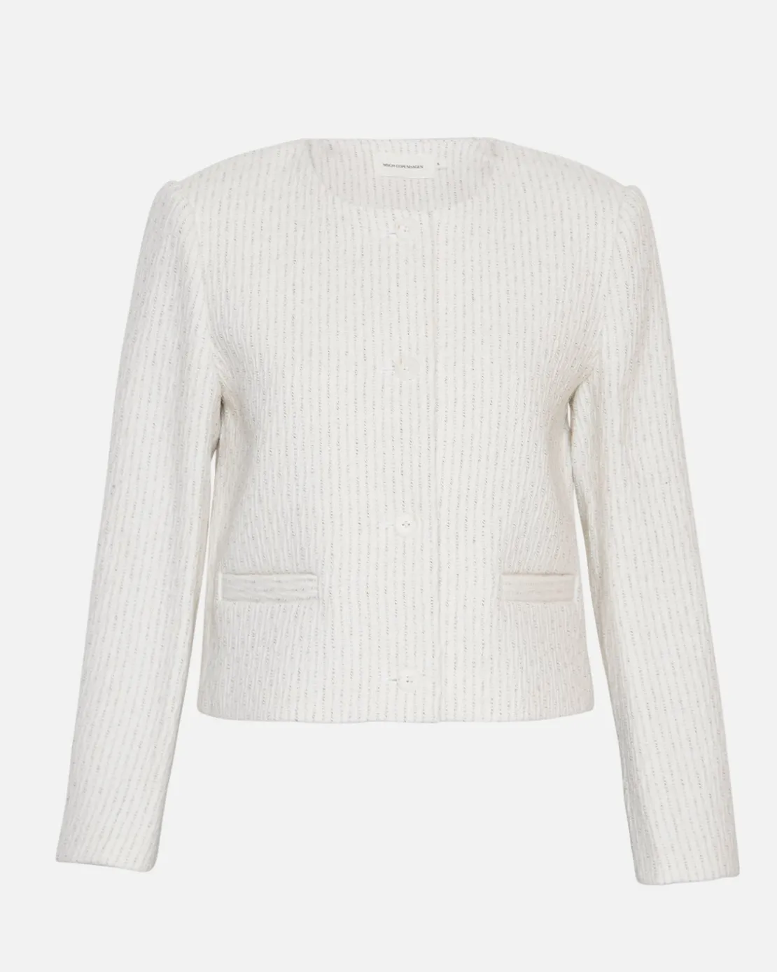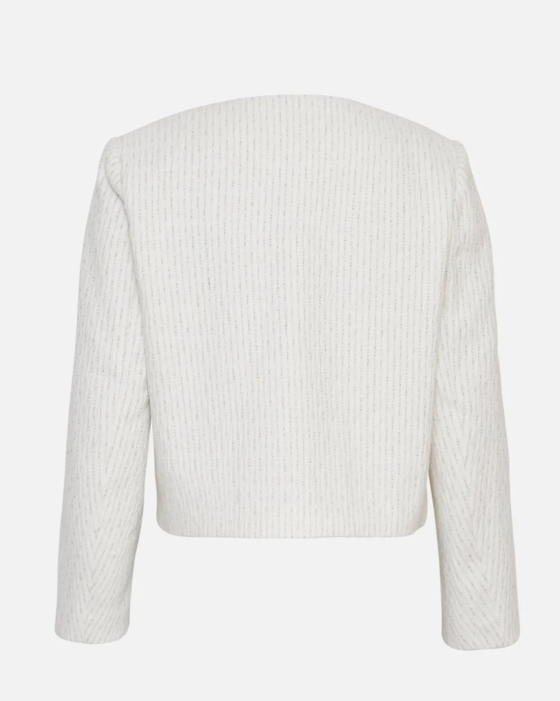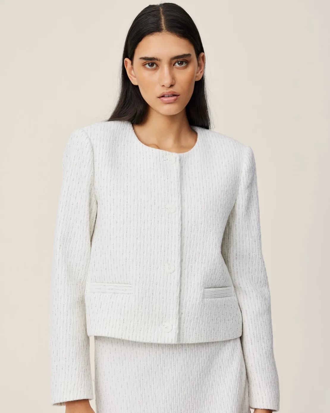 Nadialine is a quiltet quality, giving it an exclusive look. This jacket is a short jacket with a round neck, button closing, and two front pockets. It’s a good switch from a classic black blazer. It can be perfectly styled both the skirt as a full set or on it’s own with a pair of black pants and a top underneath.