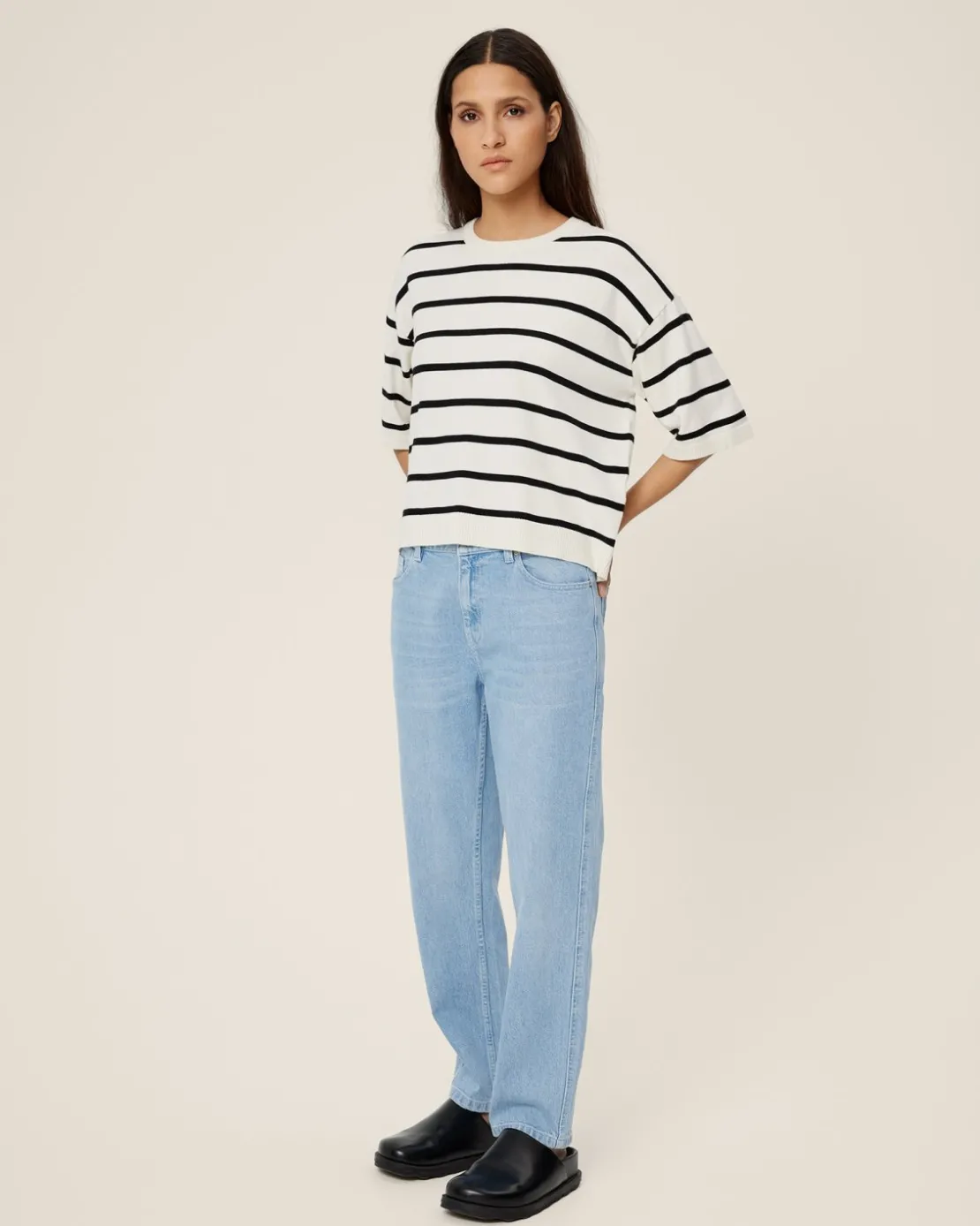 These jeans have a slim fit. Modellen er 170cm og bruger størrelse S.