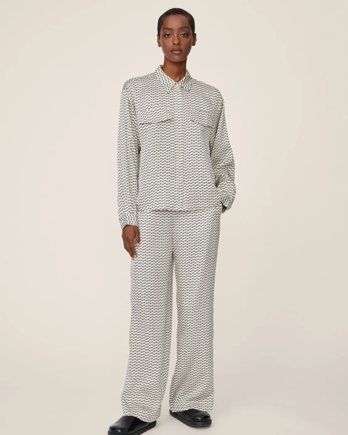 These pants have a loose fit. The model is 176 cm tall and is wearing a size S.
