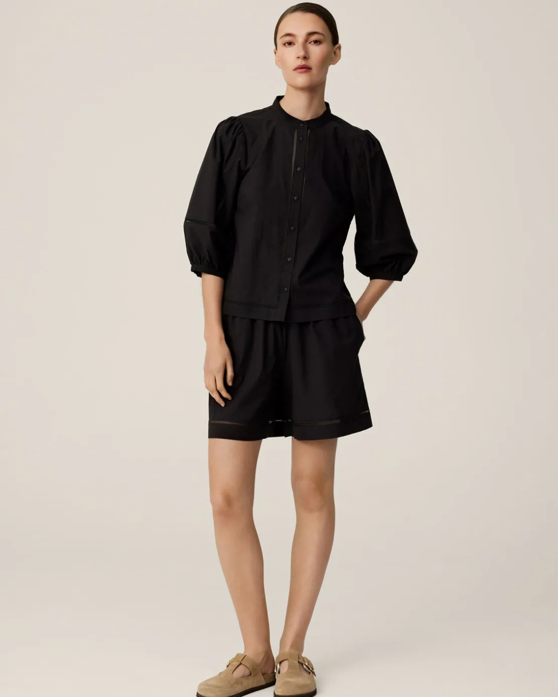 Our Erendia collection consists of these nice cotton shorts and matching short sleeve shirts. These shorts have elastic waist with string for maximum comfort and they come with romantic tape details to make them more feminine. They are ideal for both a casual outing or a nice summer party.