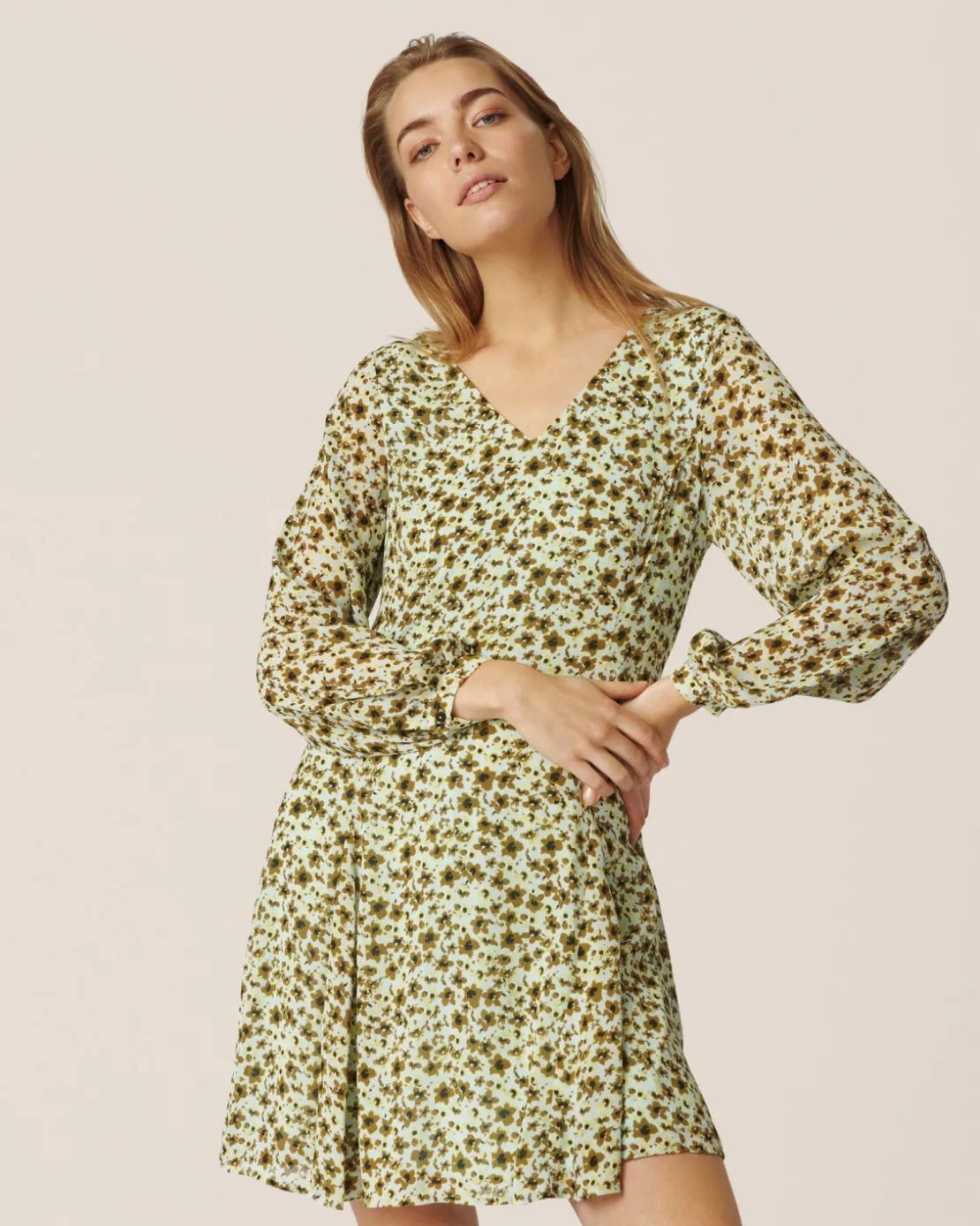 This dress has a regular fit. The model is 177 cm tall and is wearing a size S.