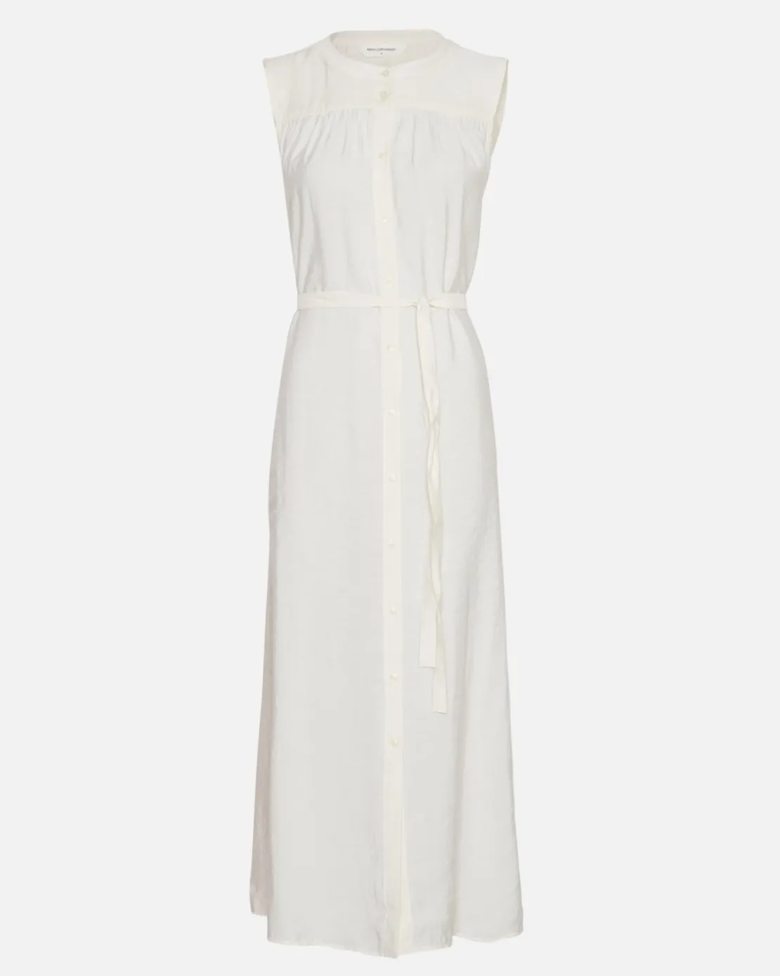 This long shirt dress features a round neckline, full button-up closur and an added belt to tie around the waist in this flattering maxi length. Style it with accessories for festive gatherings, or with sneakers for a cool everyday look.