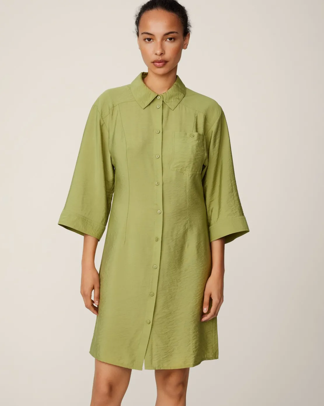 82% LENZING™ ECOVERO™ viscose fibers & 18% Polyamid. Satin Shirt Dress