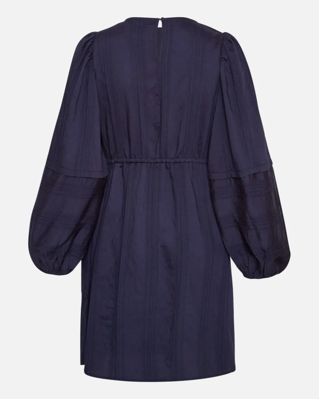 Luana dress is a versitile dress as you can tie it for a tight fit at the waist or leave it loose for a casual outfit. The entire dress is covered with small lining details, giving this simple dress a rich, structured look. There is a small button detail on the back and elastics at the cuff.