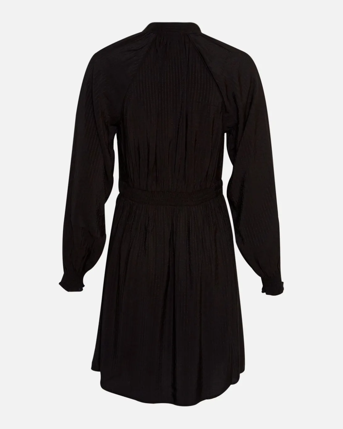 A shortdress with long sleeves and smock cuff. It features a round neckline, elastic waist, loose sleeves and a beautiful structured material. It can be dressed up with heels or tone it down with your favourite sneeks.