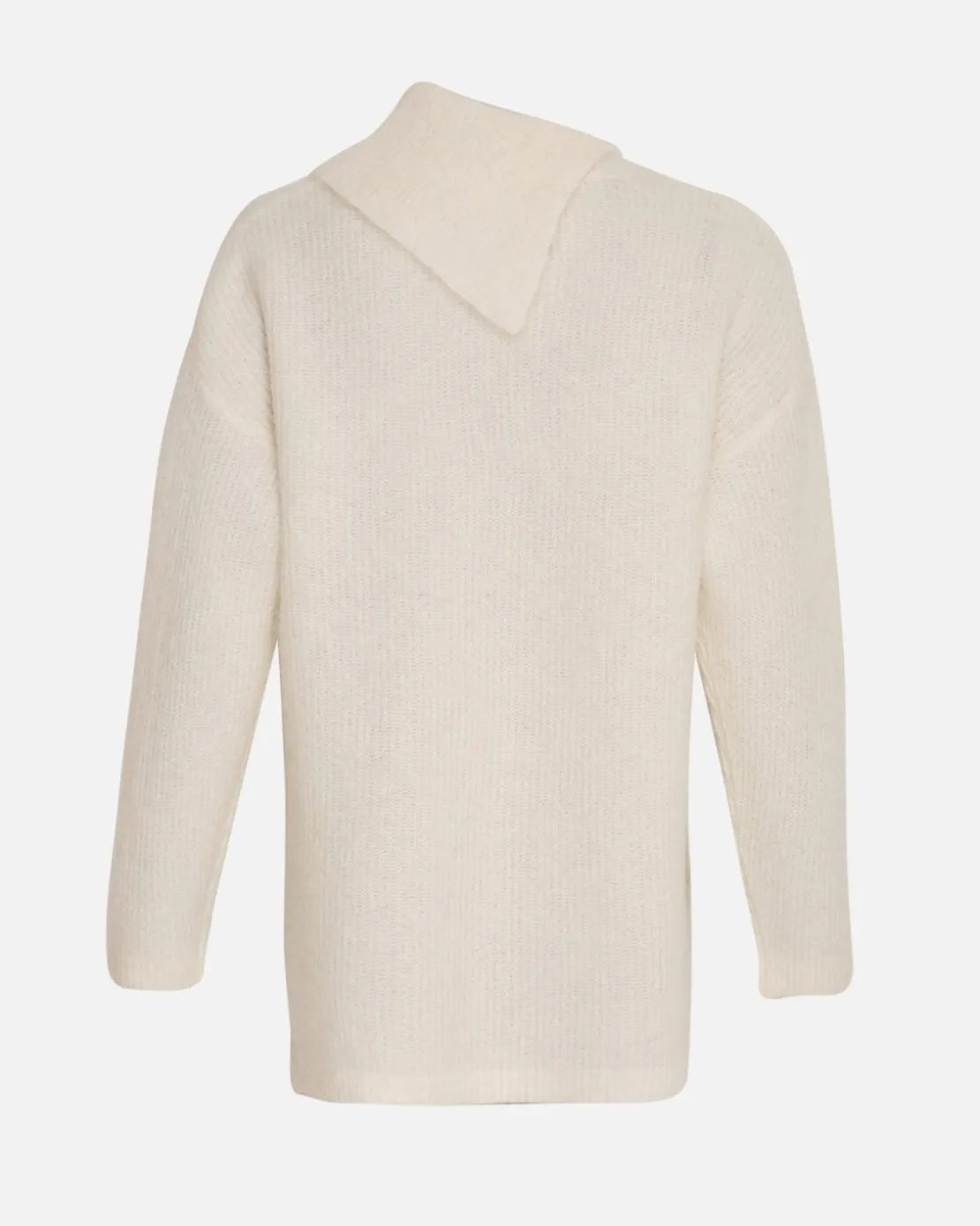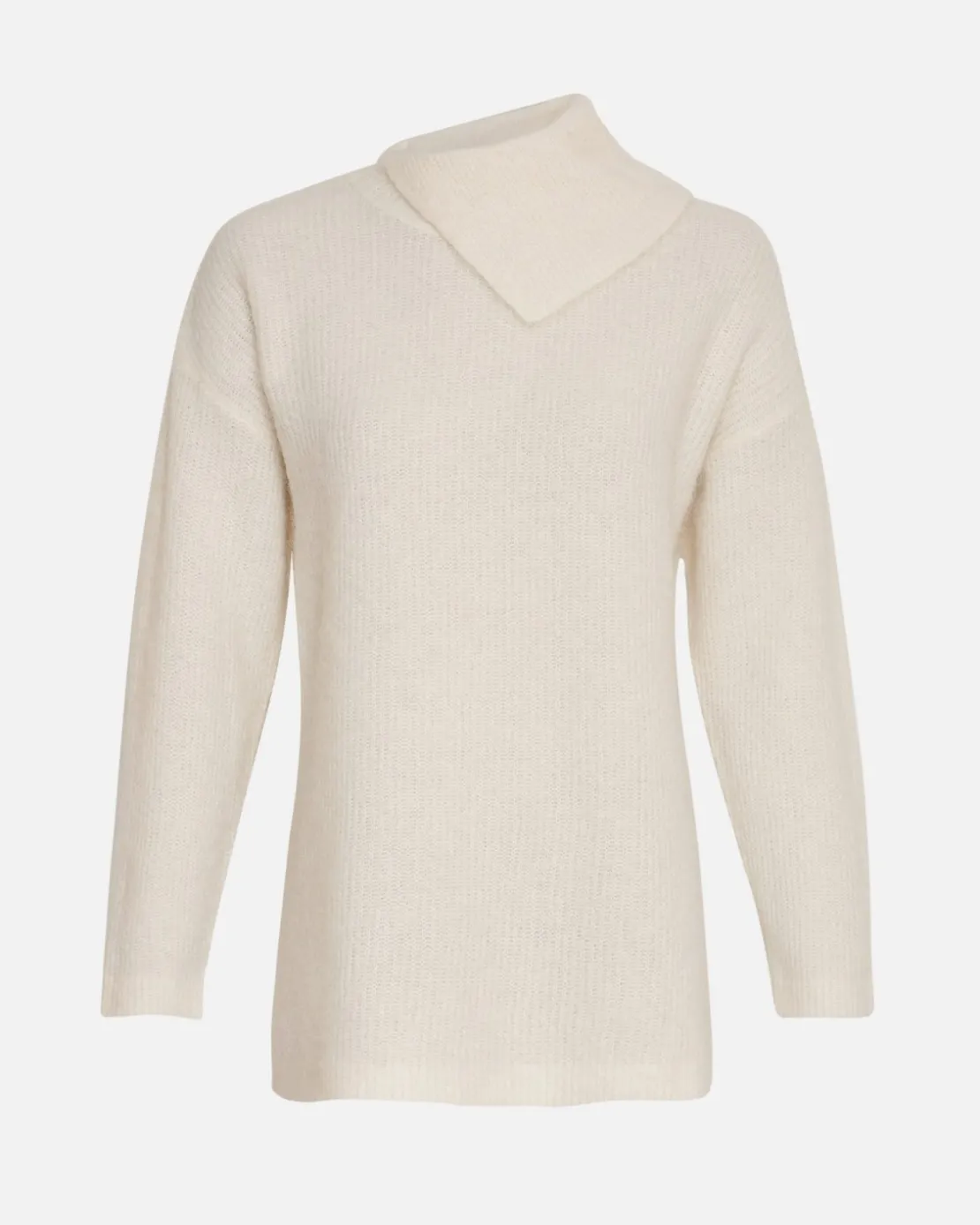 This pullover is a statement piece, it combines the classis longline pullover with a modern twist of the slant neck. It features dropped shoulders to enhance the oversized look. Style it with a cool pair of jeans to compliment the modern look of the pullover.