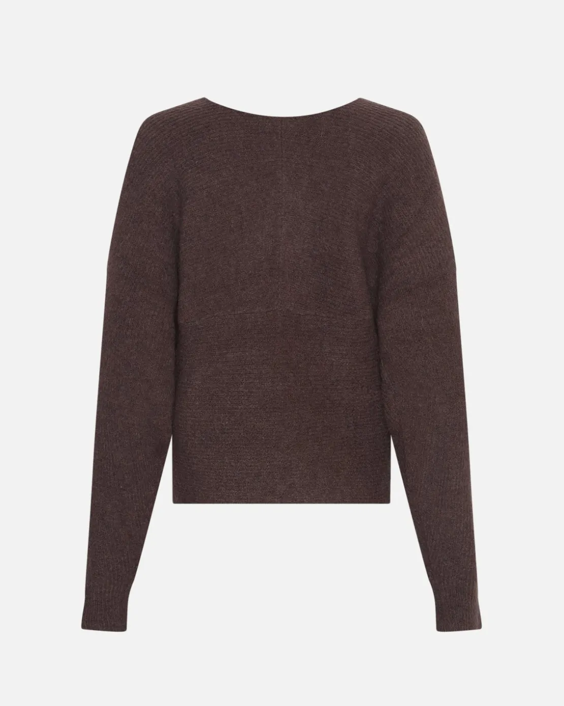 Wrap yourself in style with this chic pullover that offers a blend of timeless sophistication and modern flair. The half cardigan pattern adds a touch of intrigue to the classic knit design, creating an exquisite visual that sets you apart from the crowd. The wrap silhouette drapes gracefully, highlighting your figure and offering a flattering fit for all body types. It features dropped shoulders with a soft, cozy feel. This pullover is a highly versatile stye, seamlessly transitioning from day to night. Whether attending a cozy daytime gathering or a chic evening outing, this pullover exudes confidence and charm. Pair it with black washed jeans for a minimalistic look.