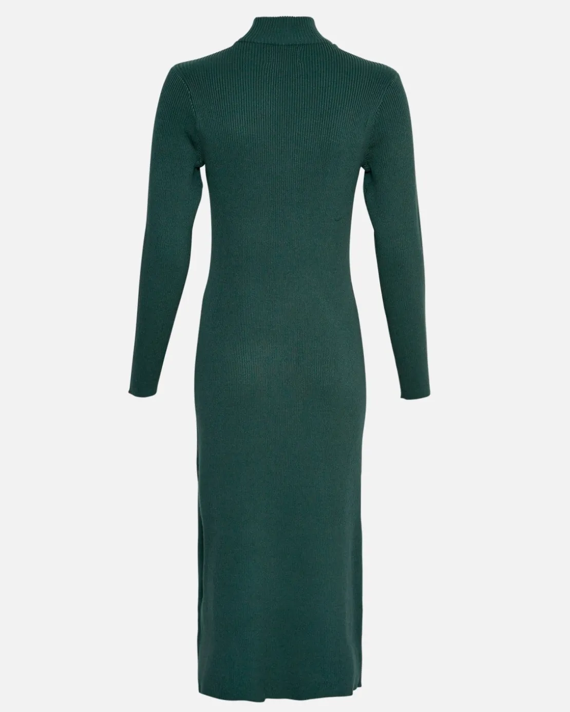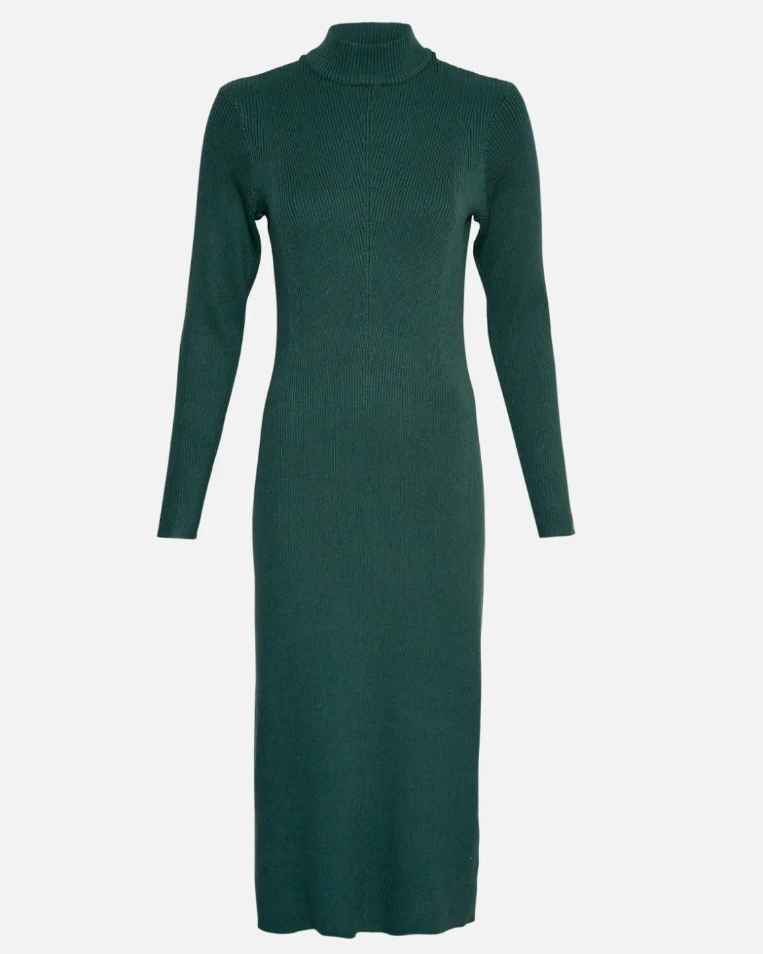 Our Avalon dress is a knitted slim fit dress, in a warm green colour.It features long sleeves and a high neck design.