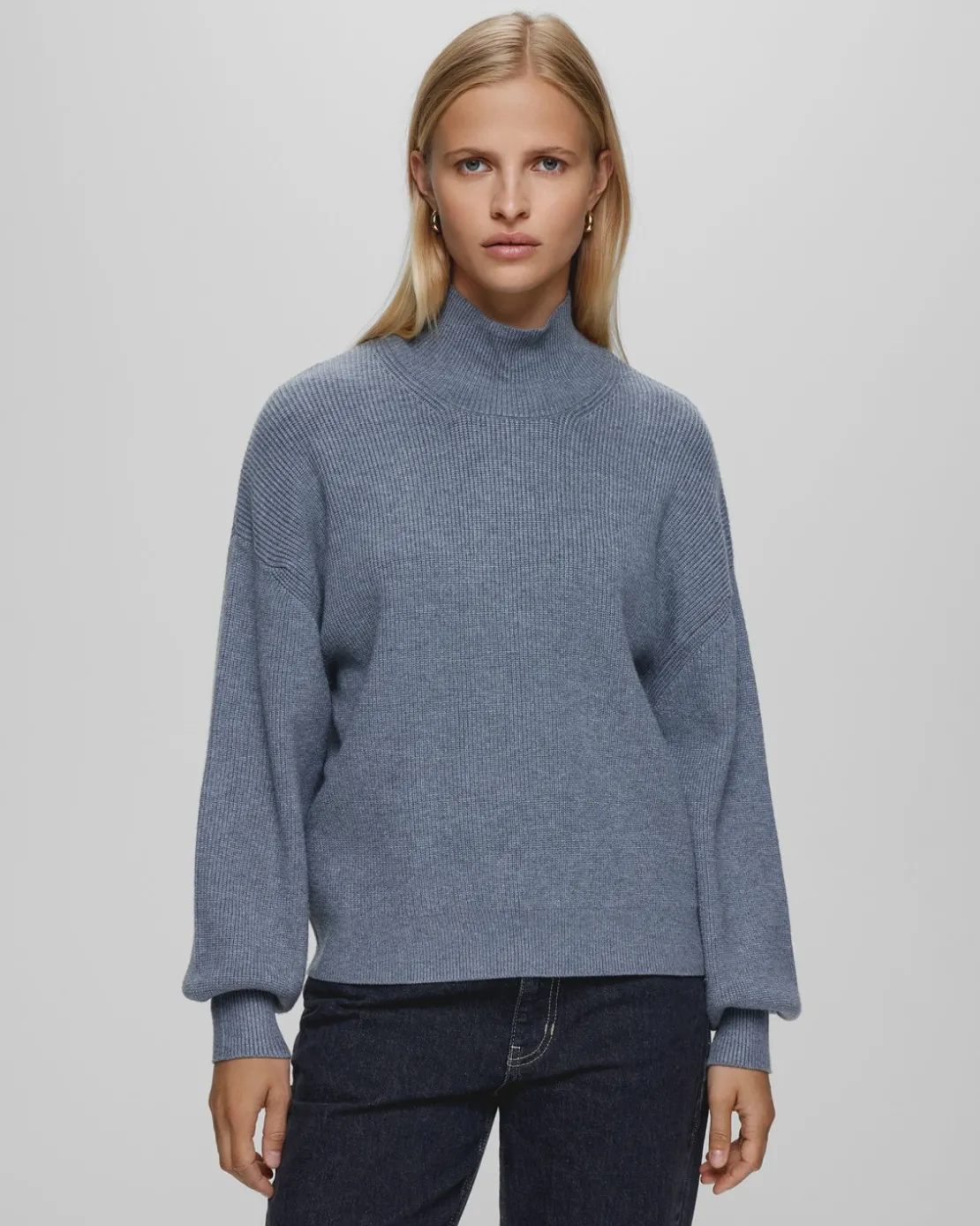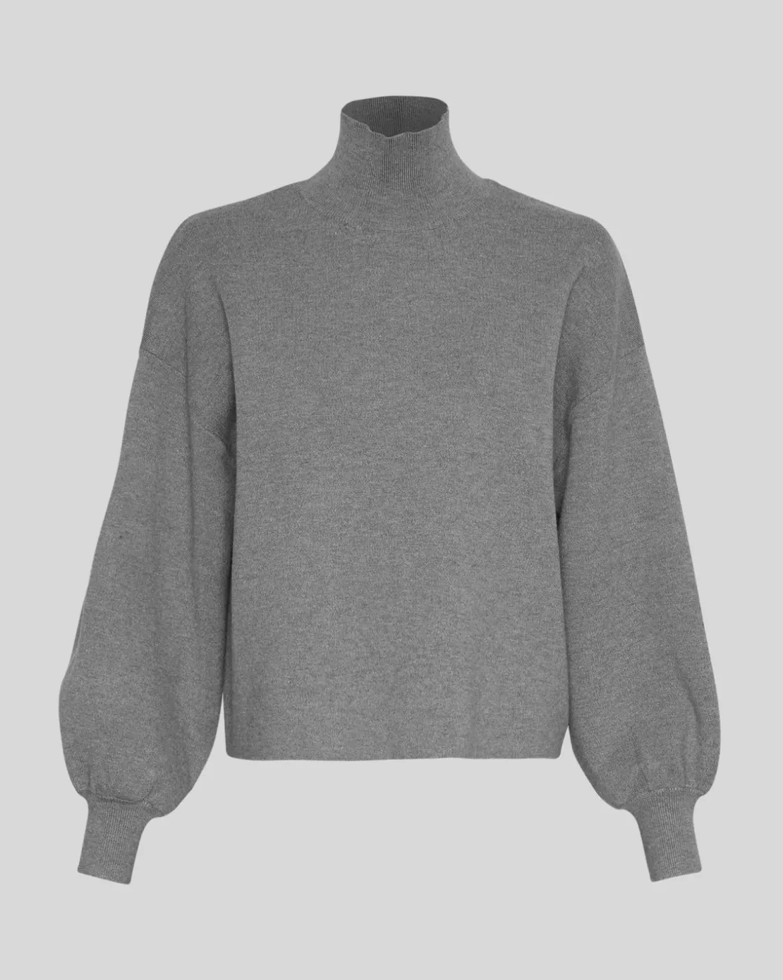 Our Mercy styles is a thick knitted quality, very soft against the skin and has a very clean look. This pullover is classic and timeless with its high neck and slightly loos sleeves. A style that you’ll wear again and again, as it can be styles with both pants, skirts and dresses.