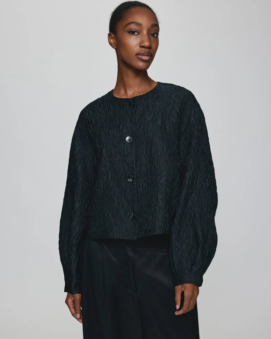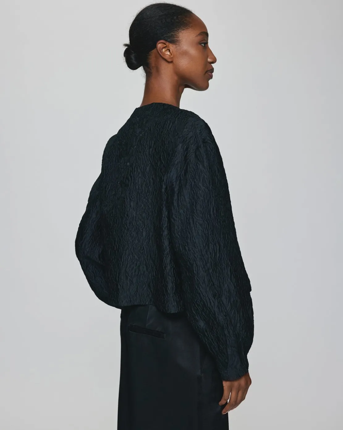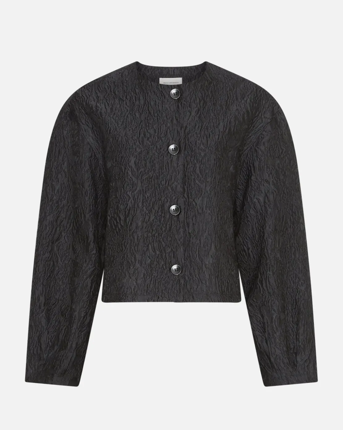 Our Irie shirt is divine as it’s created in a beautiful, crinkle textured material with a bit of shine to it. The shirt features a round neckline and big buttons down the front. The sleeves both have dropped shoulders and is voluminious. It can be styled both as a shirt and a small jacket like a blazer.
