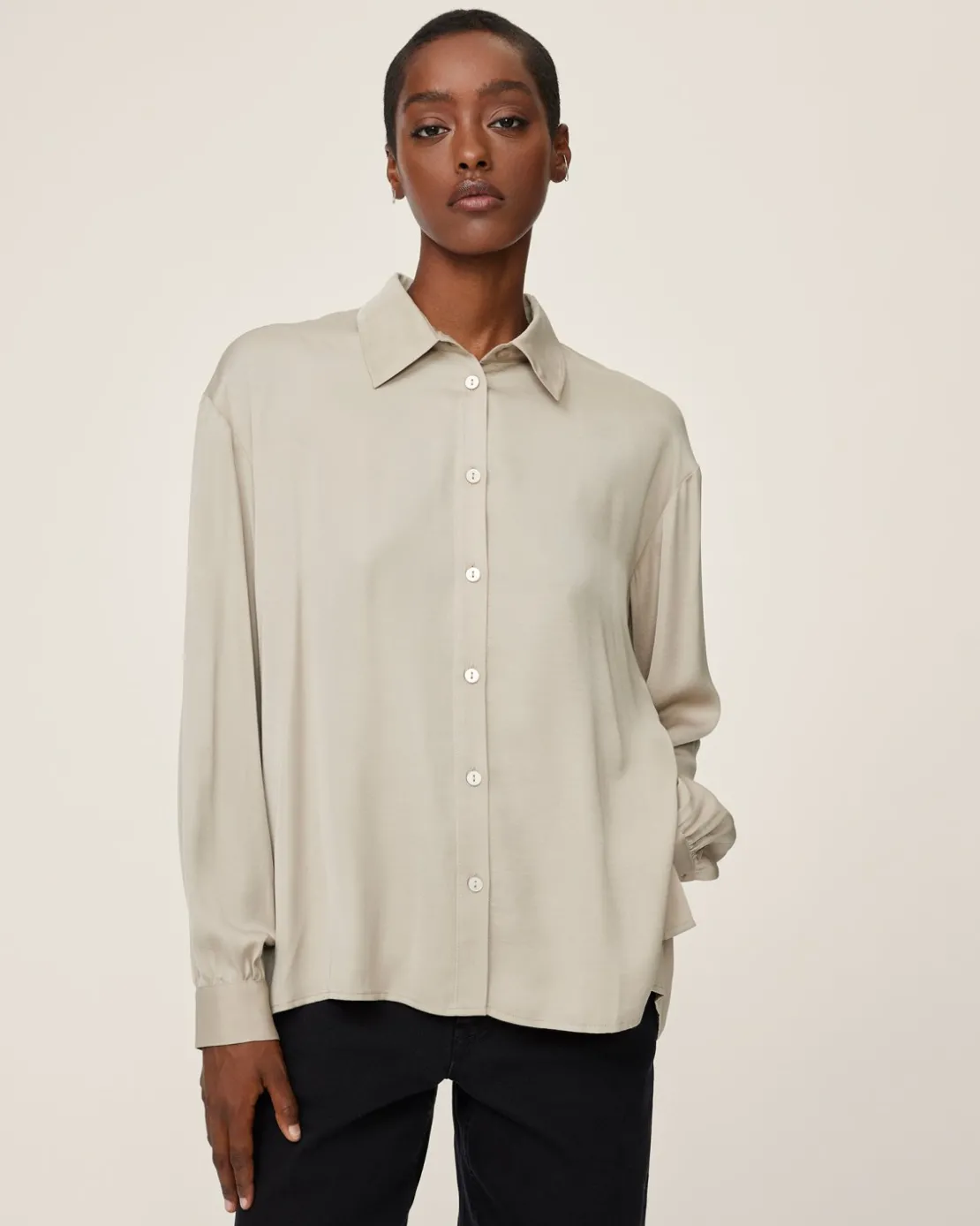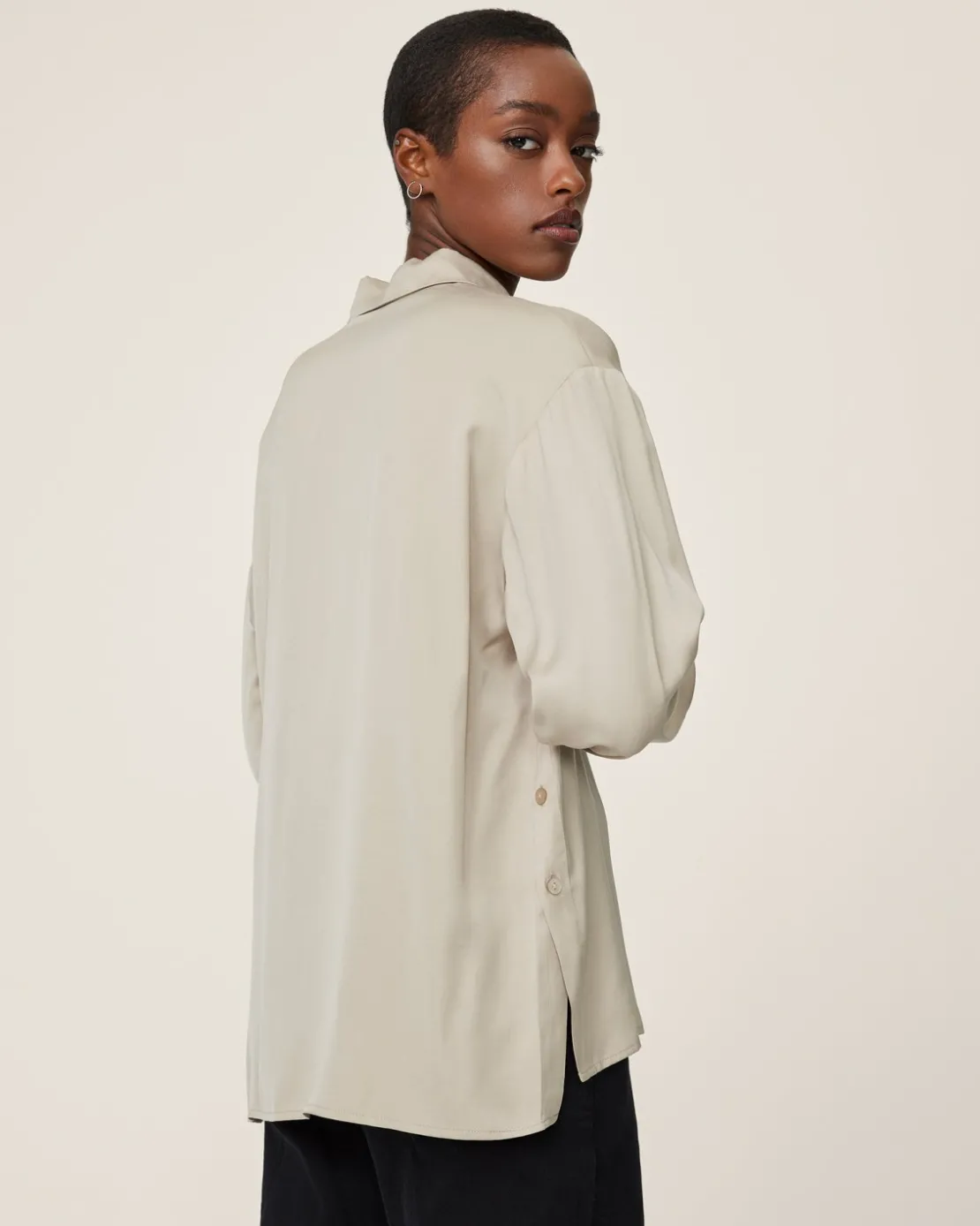 A versatile and timeless addition to any wardrobe. Nanella effortlessly embodies the essence of femininity with its elegant style. The minimalistic nature of this classic, long sleeved shirt is combined with a twist of contemporary design by the side slits and button details. Whether for formal gatherings or relaxed outings this shirt will drape effortlessly making for a versatile outfit. Pair with your favorite pants, add a blazer for a professional look or simply match with your go-to skirt.