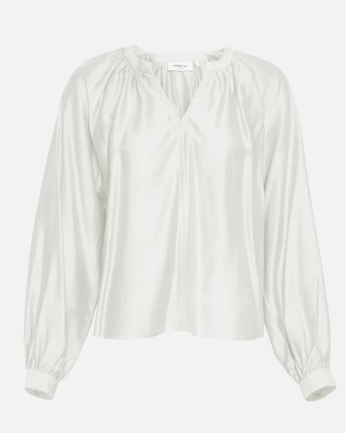Our Romina shirt is a new take on a classic shirt but with new details, such as loose sleeves, and an open v-neckline instead of a full button up closing. It’s created without the classic collar, to make it stand out even more. The colour is a light soft green and the shiny look to the material makes it perfect for dressing up jeans, or used in a more formal occasion