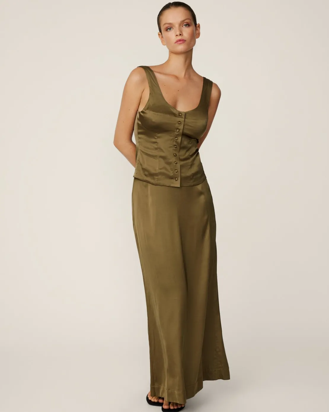 This limited edition long satin skirt is truly a fusion of chic elegance and Scandinavian minimalism. Julietta long skirt features a tailored fit that flatters your figure and hugs your curves at the right places. The long length provides a feminine look and versatility to a timeless wardrobe. Whether wearing it for special occasions with the matching Julietta strap top, or dressing it down with a loose knit pullover for a casual ensemble, this slim fitted skirt is the go-to choice for those who appreciate timeless style for many years to come.