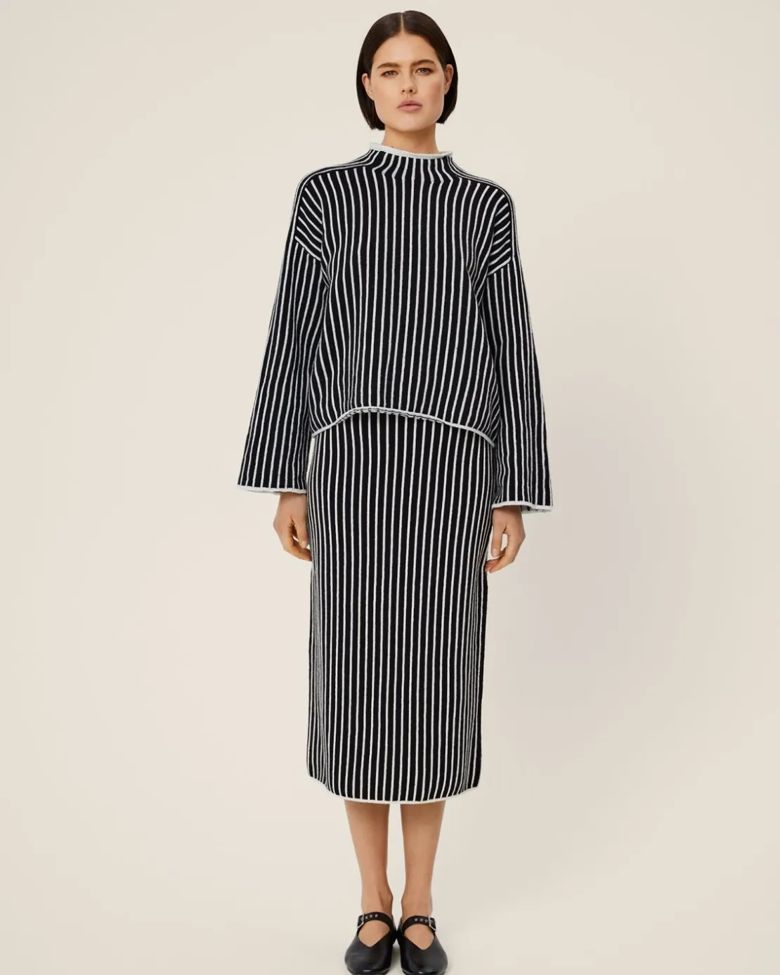 62% Recycled Polyamide, 20% Cotton & 18% Wool. Striped Knit Skirt