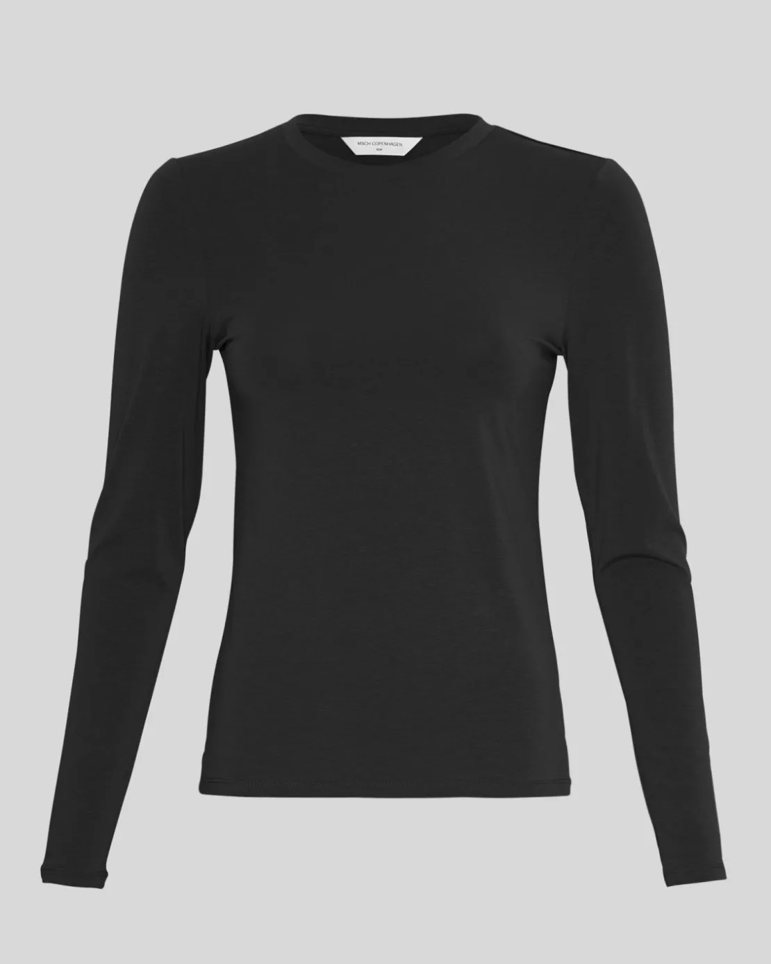 The Betrina top is a basic necessity in every wardrobe, with it’s long sleeves and a classic O neck, it’s an item you can’t live without. It’s versatile and can be used under knits as an exra layer to keep you warm, or wear it uner your blazer as a monochrone look. It’s slim fit so it’s perfect for layering.