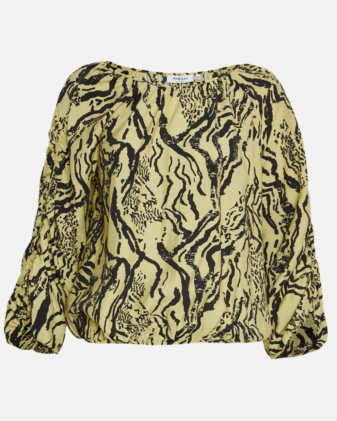 Theresia is a modern top, with a cool print. the top features ballon sleeves and elastic cuffs.