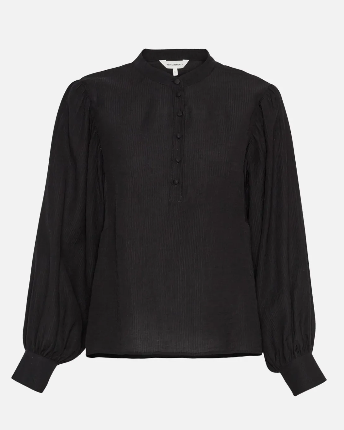 Angelina Top is a lightweight, long sleeved top in a ribbed matieral. The top features a mandarin collar, a half placket and long sleeves with a classic cuff. This top is the perfect everyday-office top, as it’s soft, comfortable and stylish for work. Style it with either a pair of pants or a skirt.